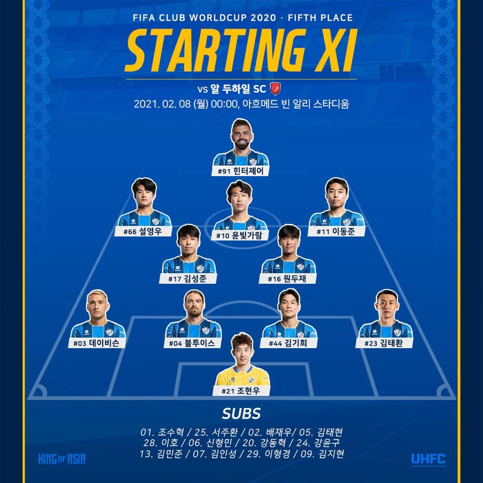 | ▲ 울산의 알두하일전 선발 라인업. [울산 현대 페이스북. 재판매 및 DB 금지] |