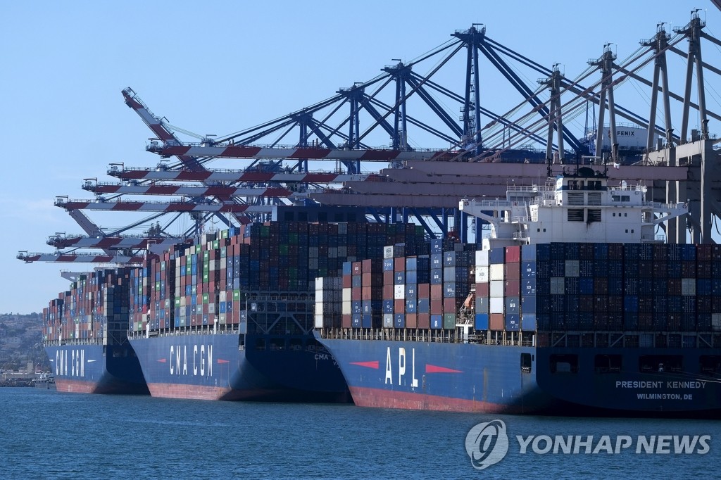 | ▲ 미 물류대란 진앙 LA항서 하역 대기 중인 컨테이너선들 [AP 연합뉴스 자료사진. 재판매 및 DB 금지] |