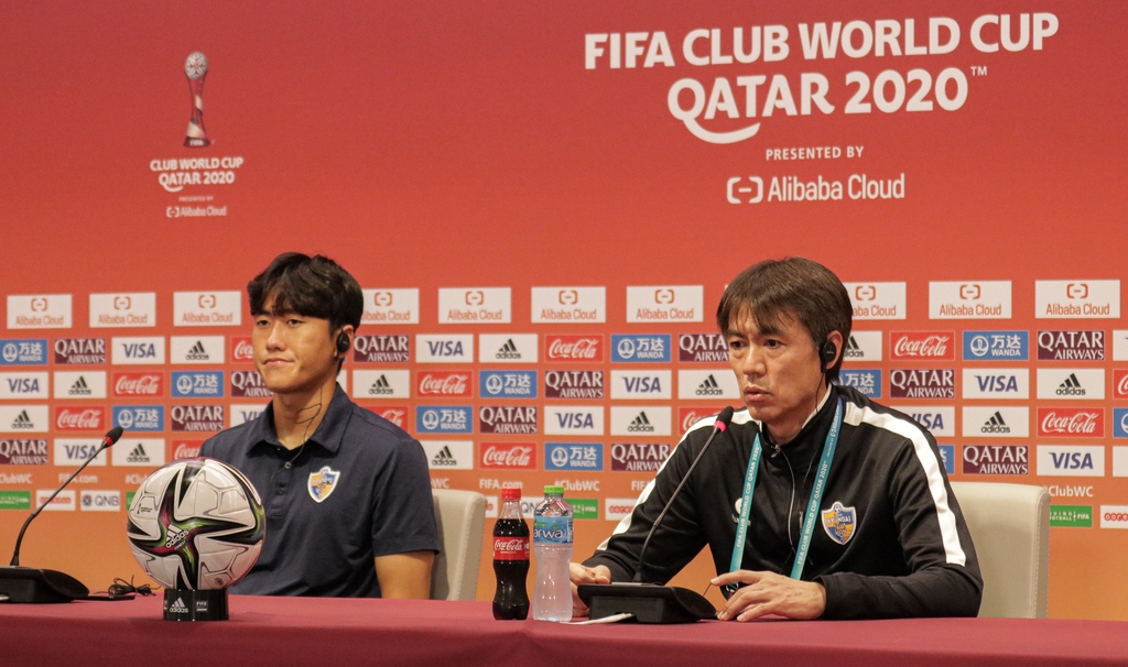 | ▲ 클럽월드컵 기자회견. FIFA 클럽 월드컵 5·6위 결정전을 앞두고 울산 현대 홍명보 감독(오른쪽)과 미드필더 원두재가 기자회견을 하고 있다. [울산 현대 제공. 재판매 및 DB 금지] |