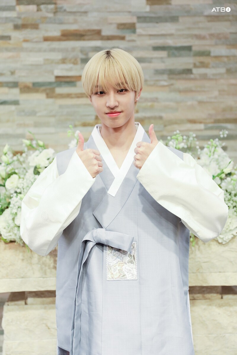 These photos, provided by IST Entertainment, show Chuseok Holiday greeting photos of rookie boy group ATBO wearing Hanbok, the traditional clothing of Korea.