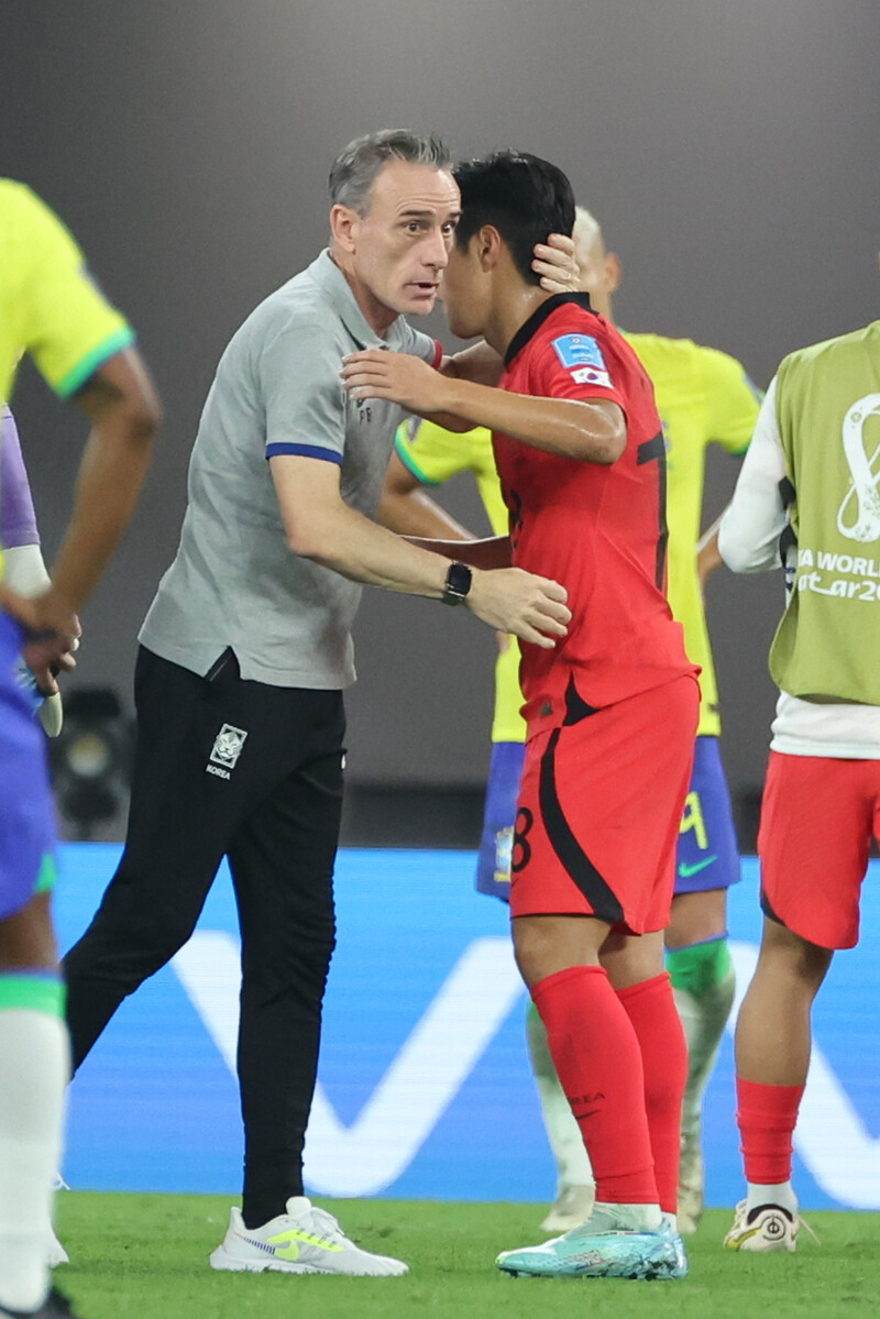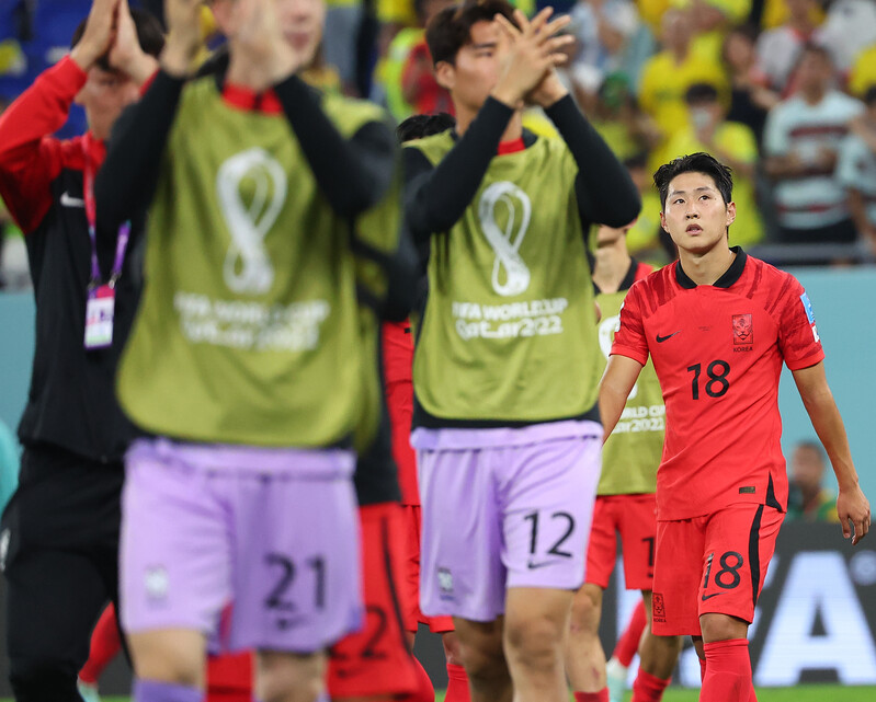 These photos show South Korean National team member Lee Kang-in at the 2022 World Cup match against Brazil on December 6.