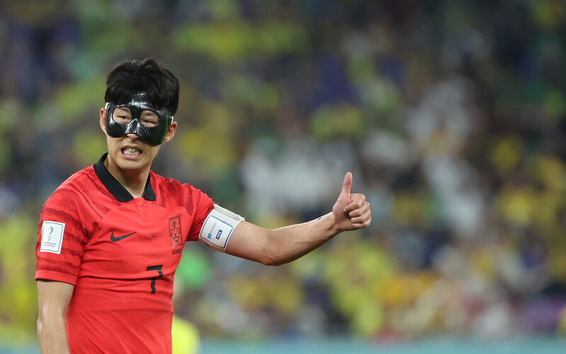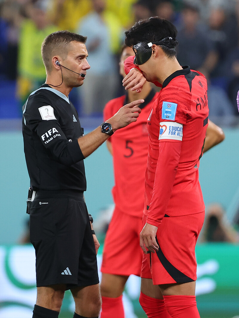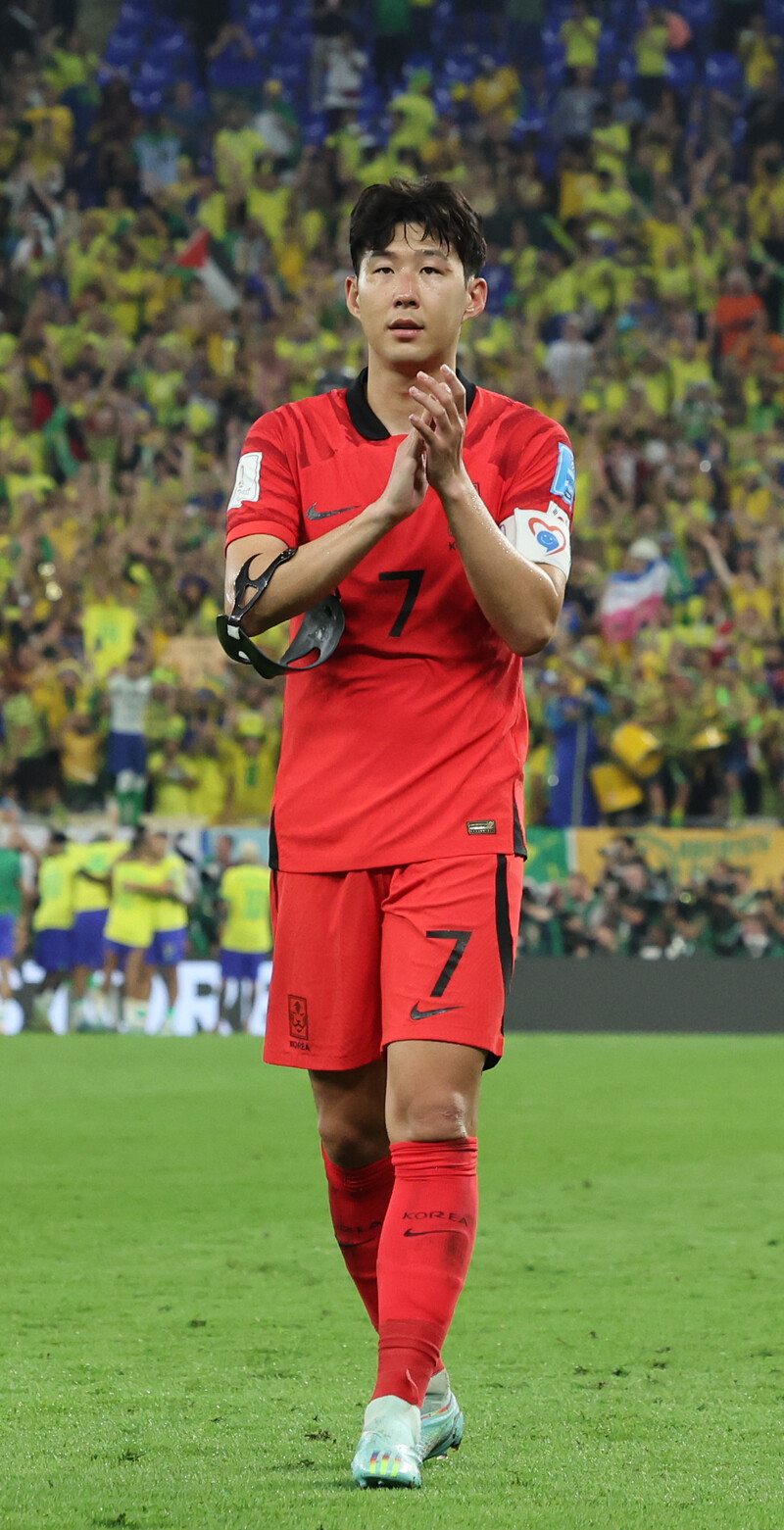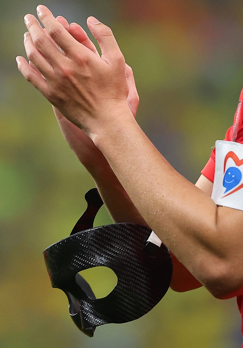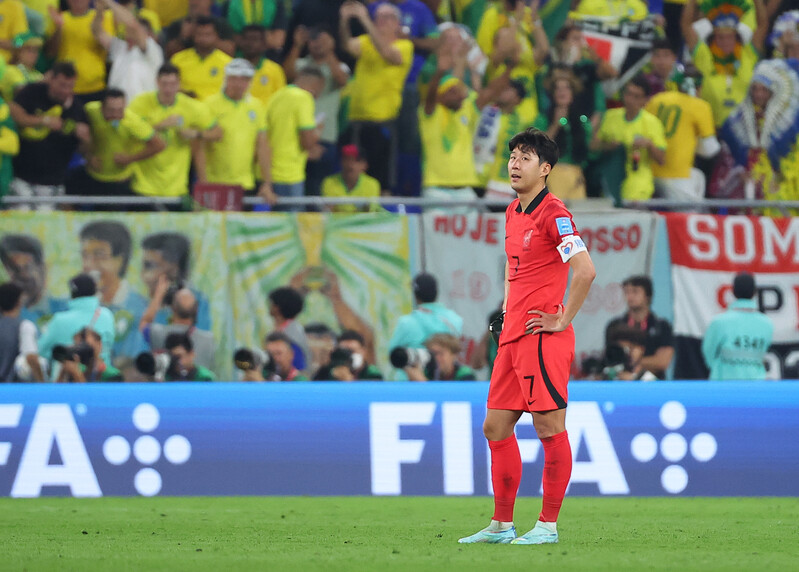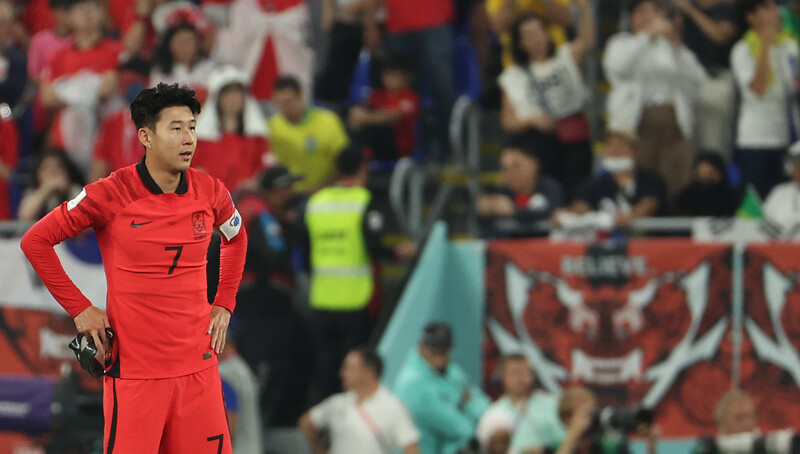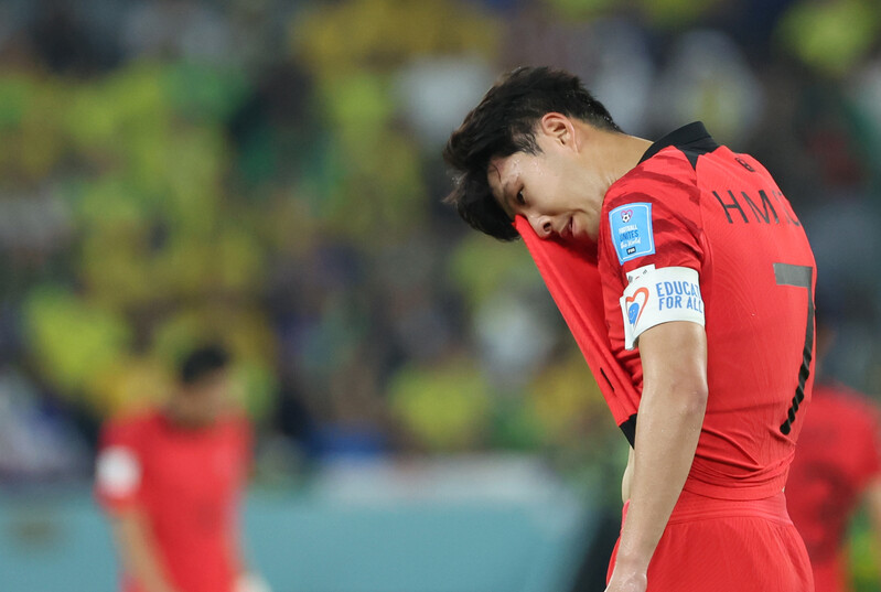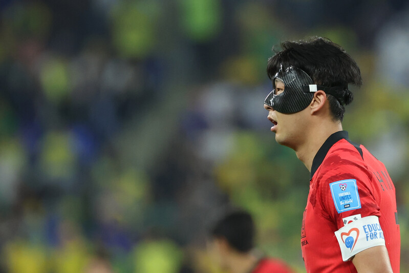 These photos show South Korean National team member Son Heung-min at the 2022 World Cup match against Brazil on December 6.