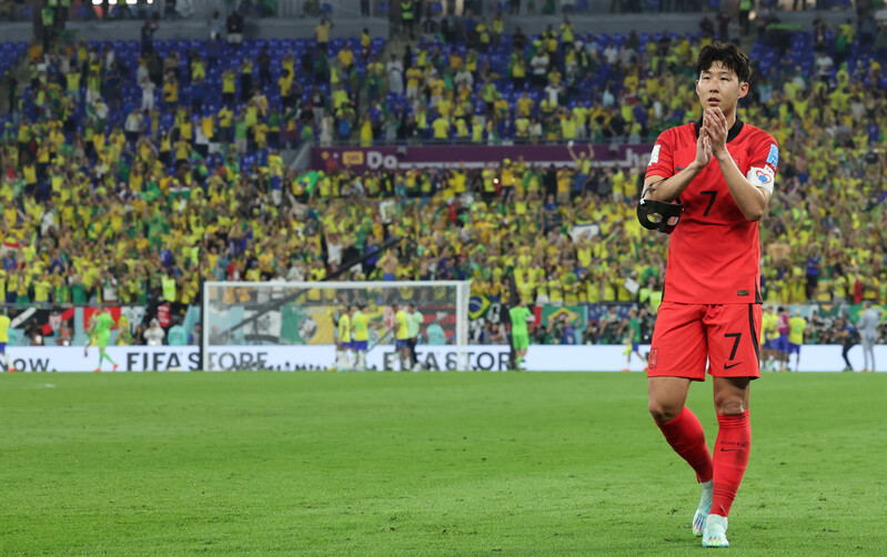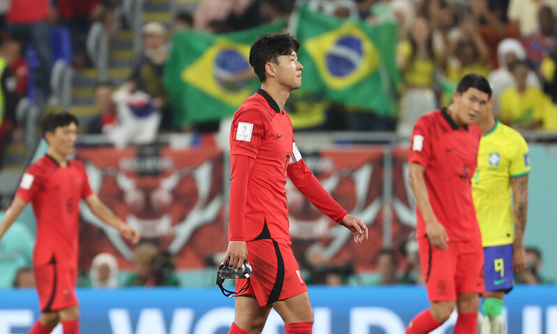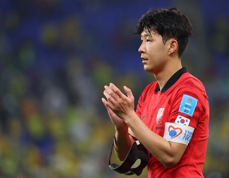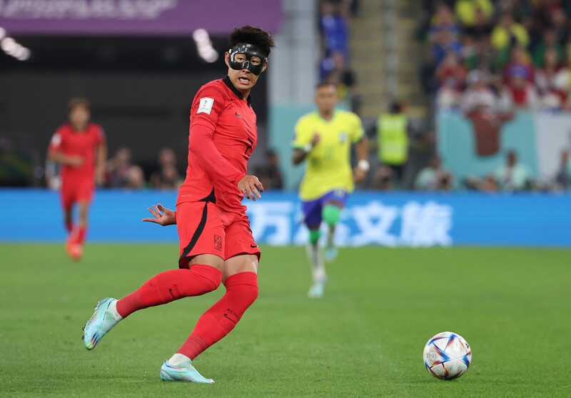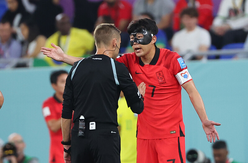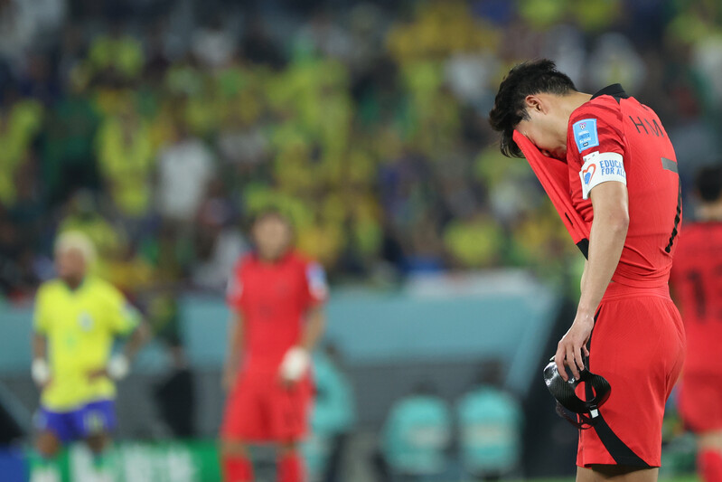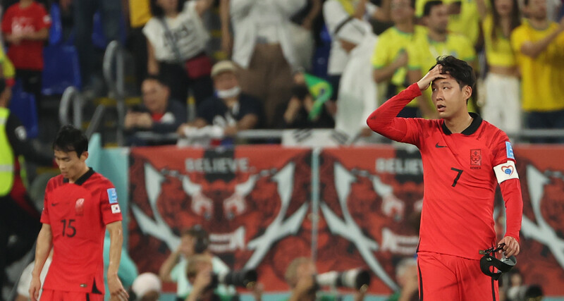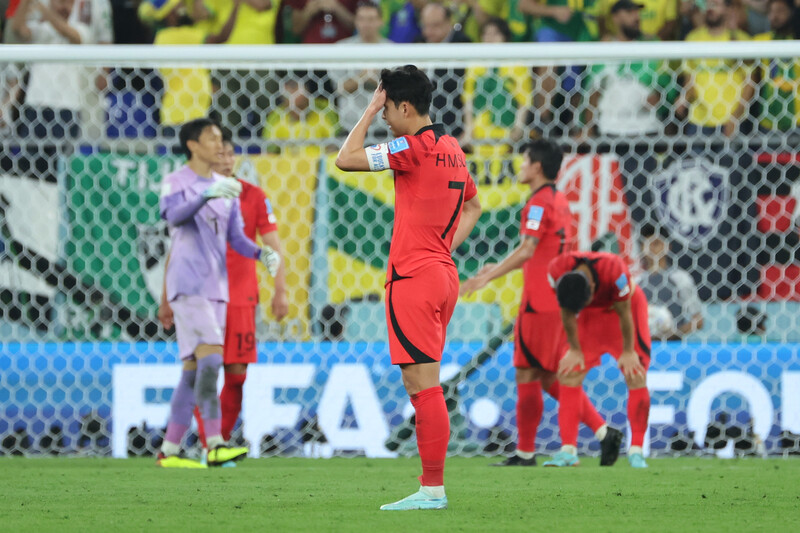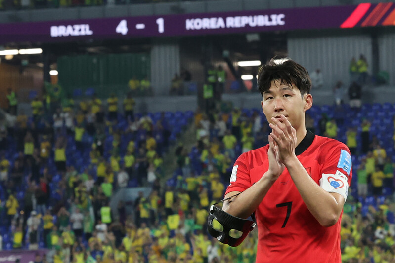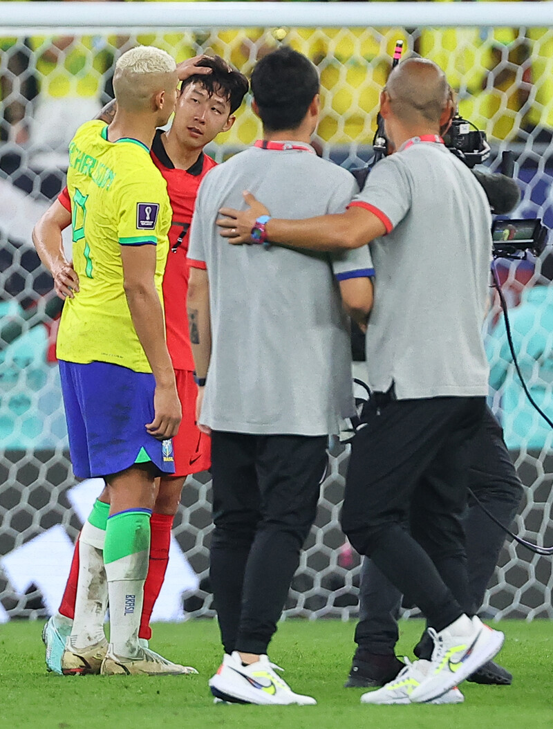 These photos show South Korean National team member Son Heung-min at the 2022 World Cup match against Brazil on December 6.