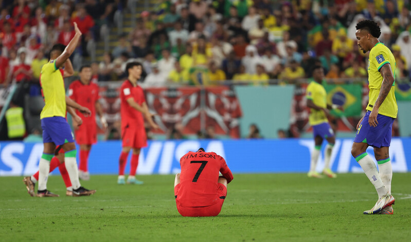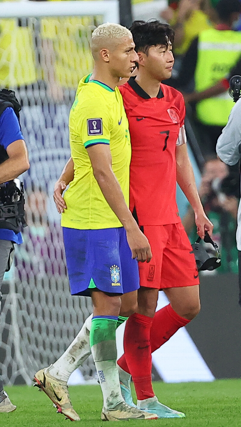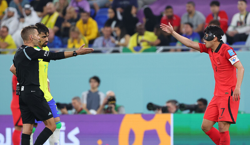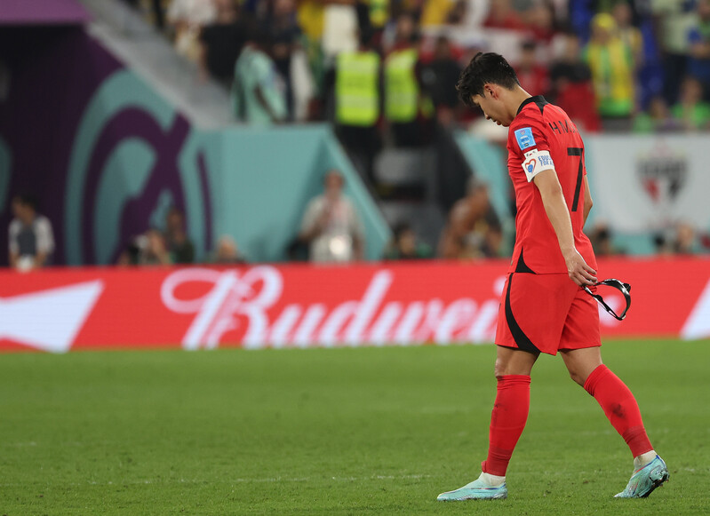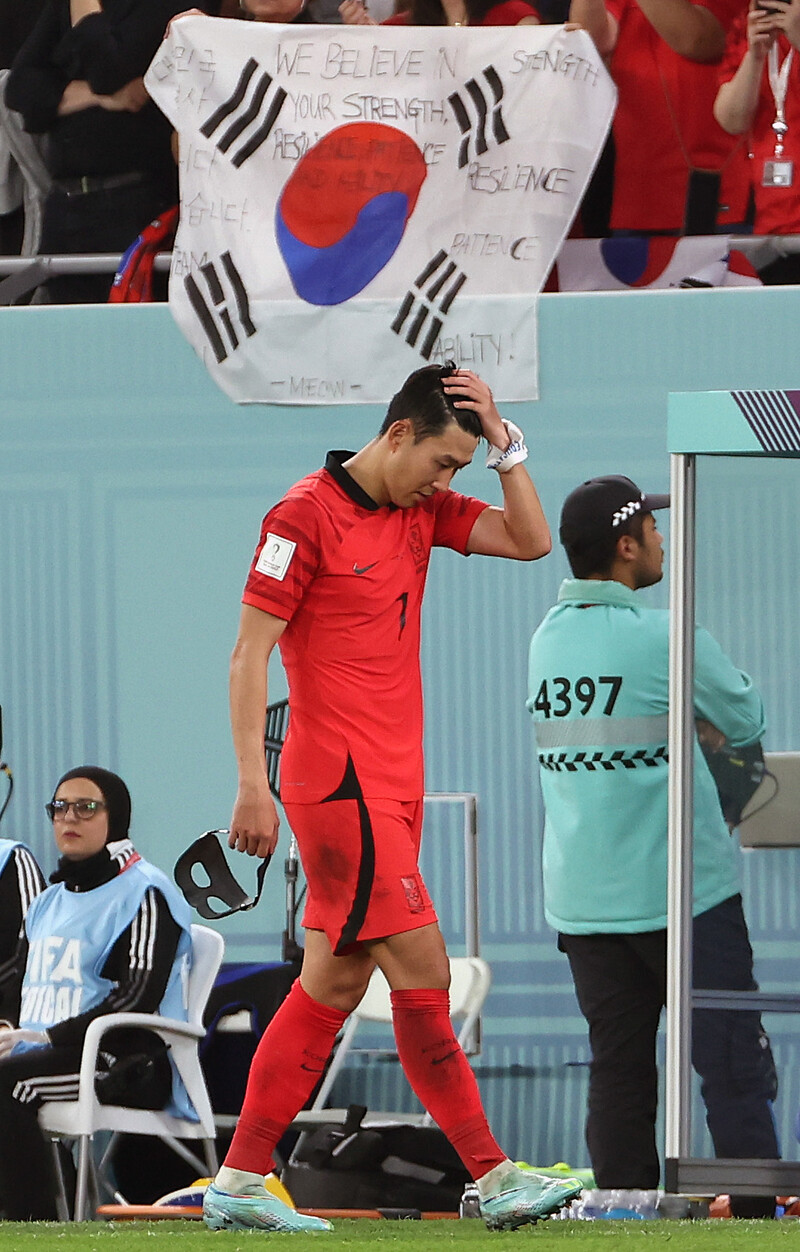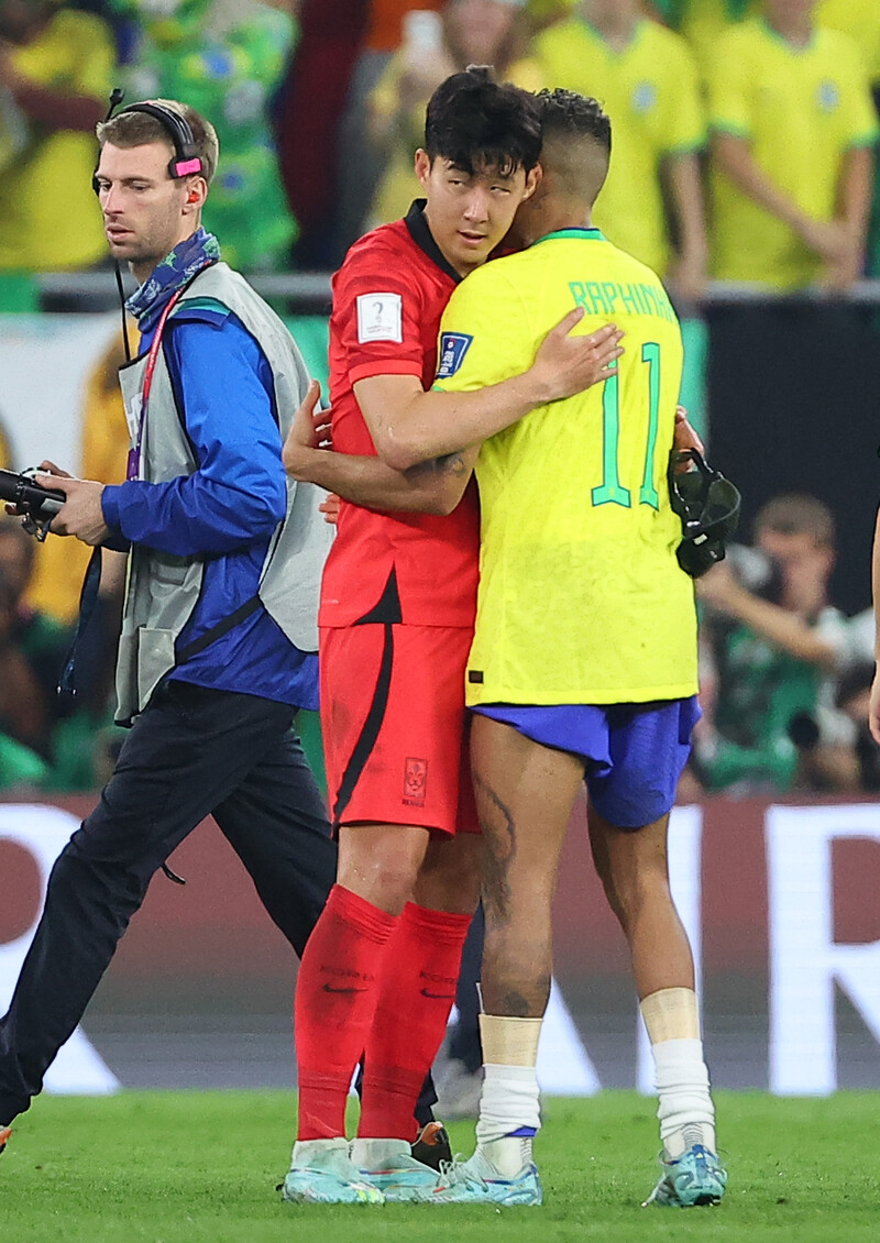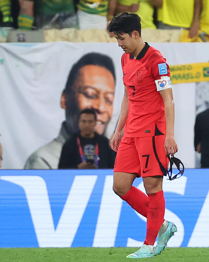 These photos show South Korean National team member Son Heung-min at the 2022 World Cup match against Brazil on December 6.
