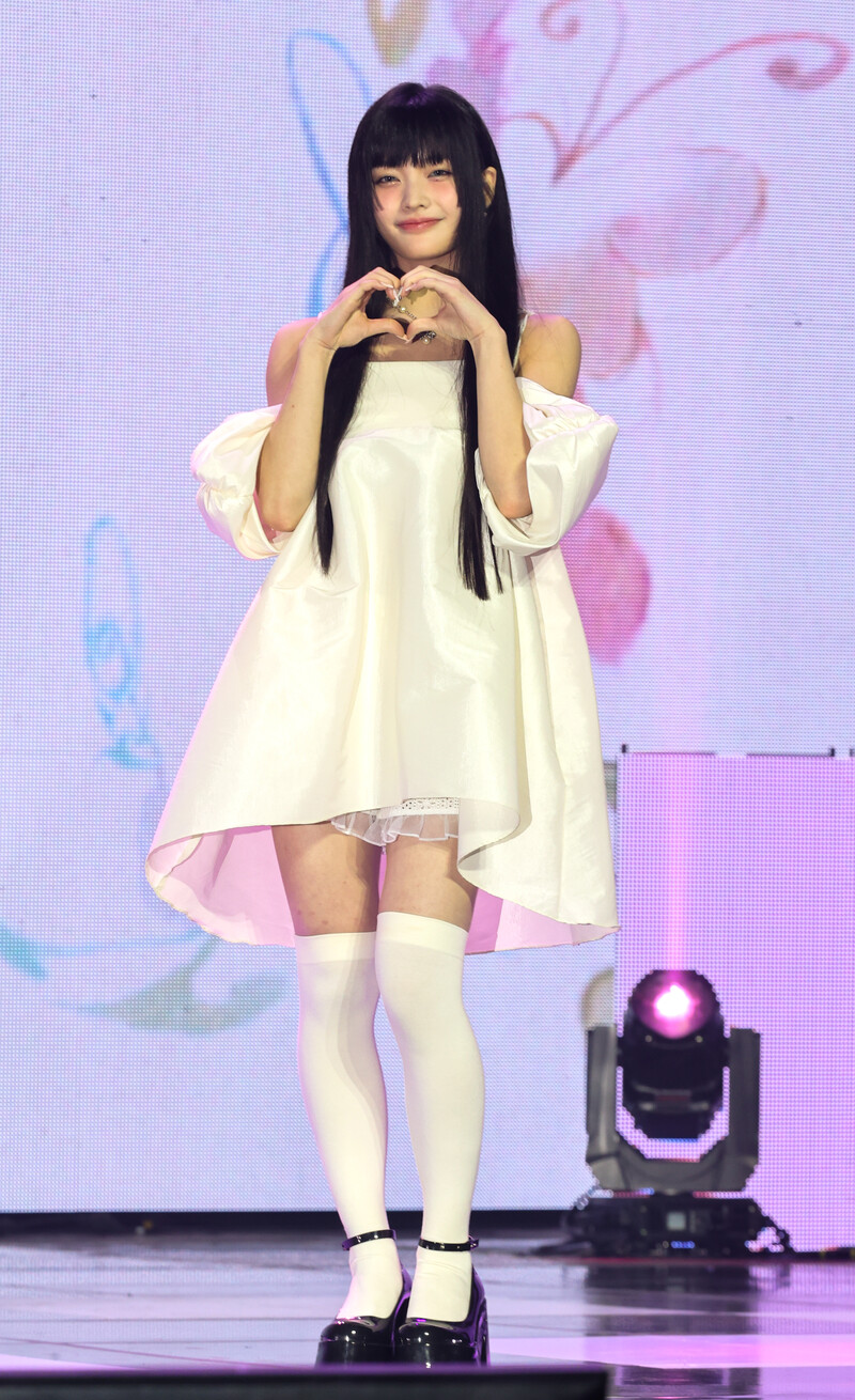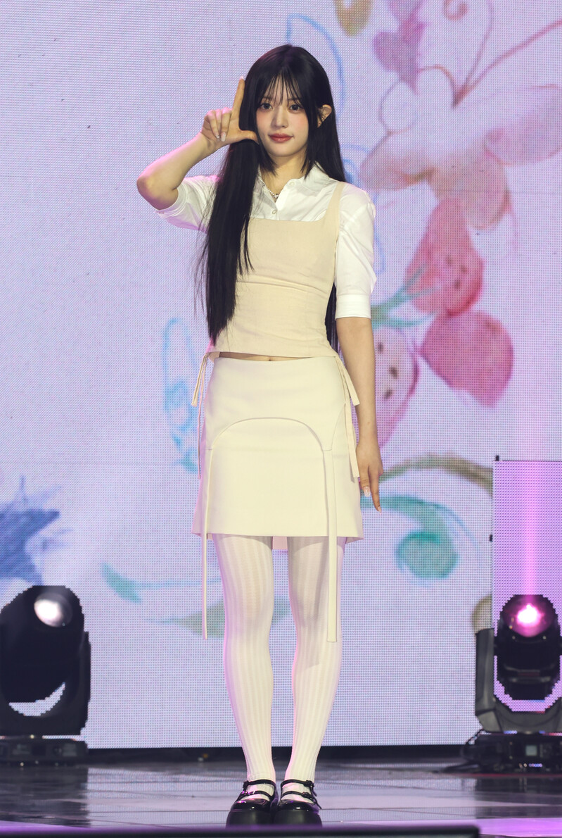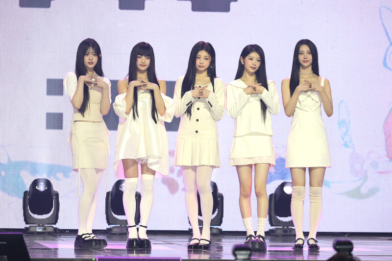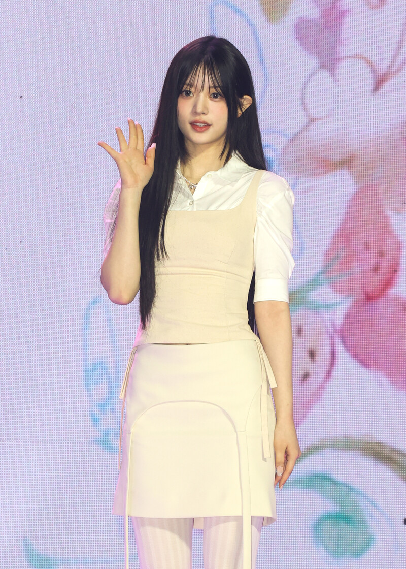 Members of South Korean girl group ILLIT poses for individual and group photos during a Media showcase for the group's debut mini album "Super Real Me" with title song "Magnetic" in Seoul on March 25, 2024.