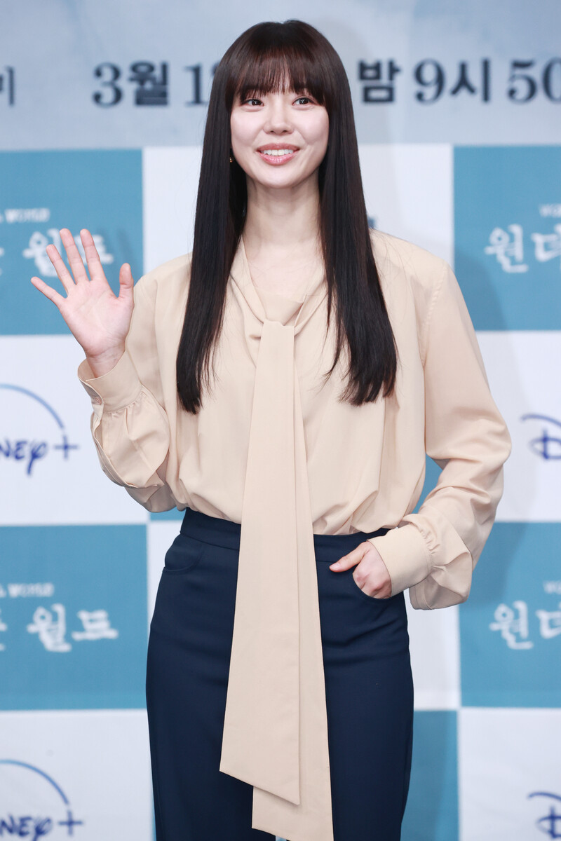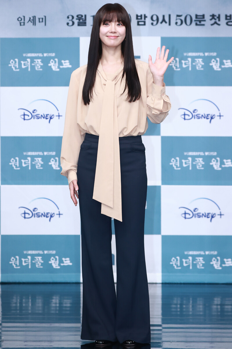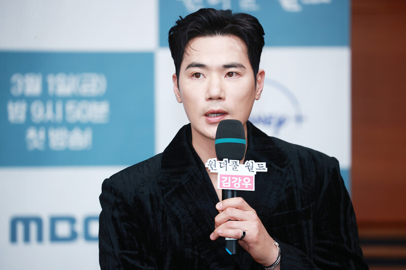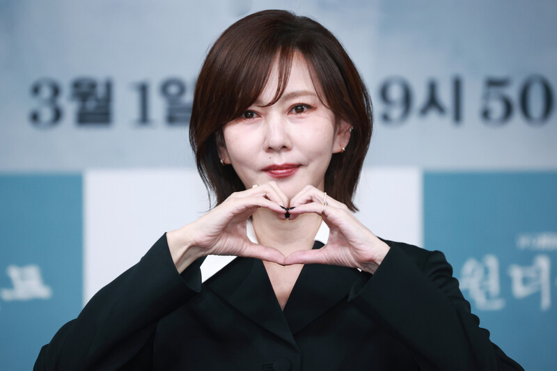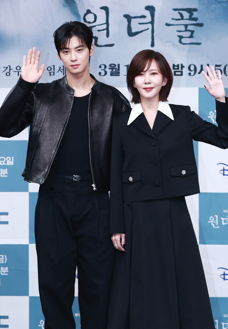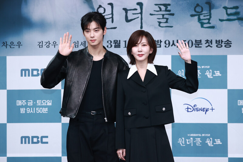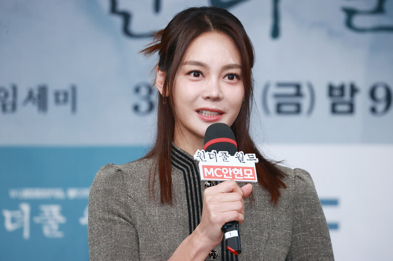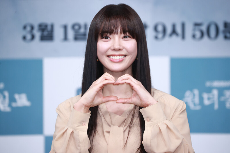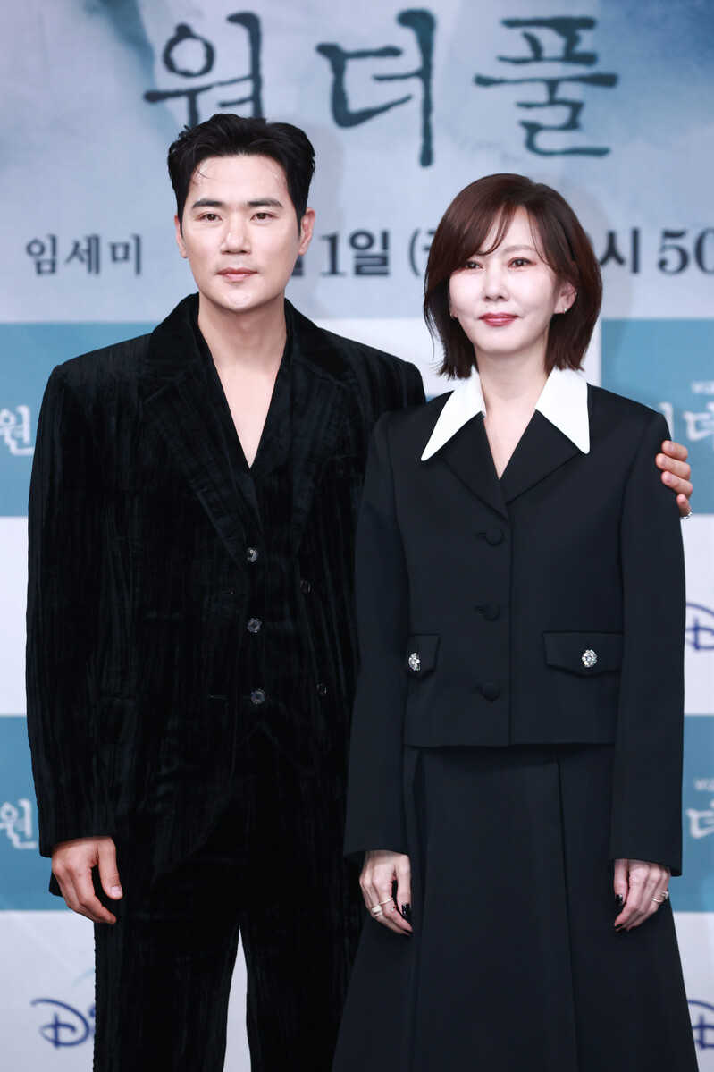 Casts for the MBC-TV's new drama "Wonderful World," poses for a photos during a publicity event in Seoul on Feb. 29, 2024. The first episode of the drama was aired on March 1. (Yonhap)