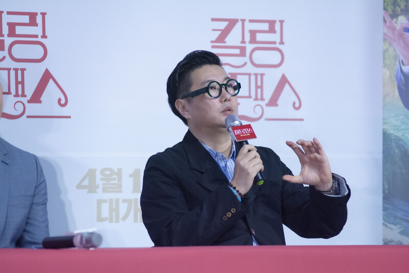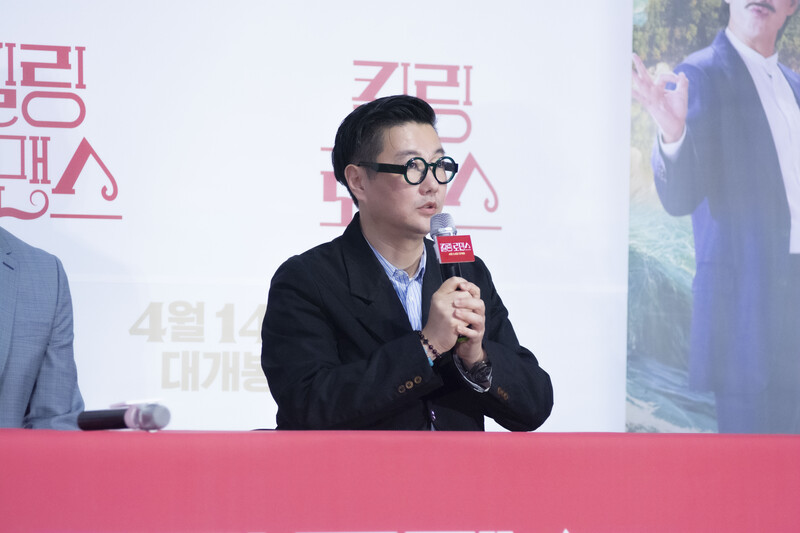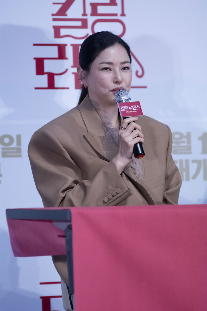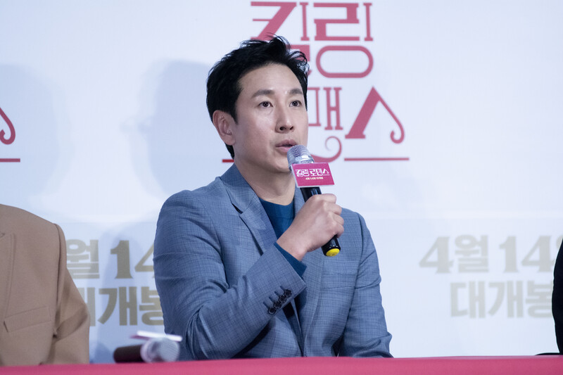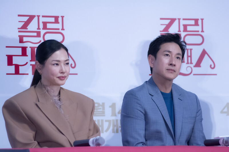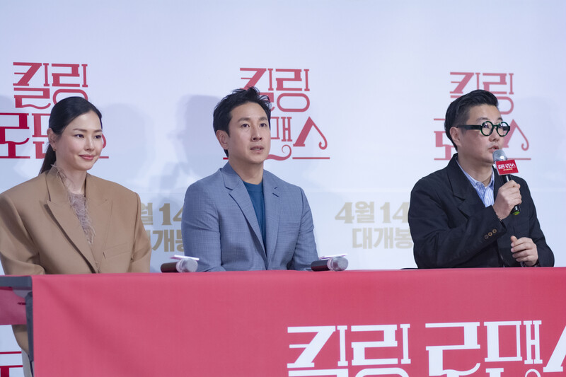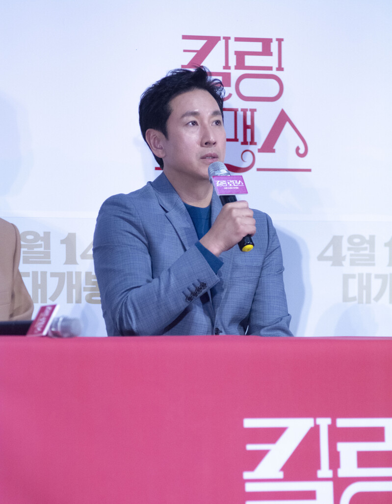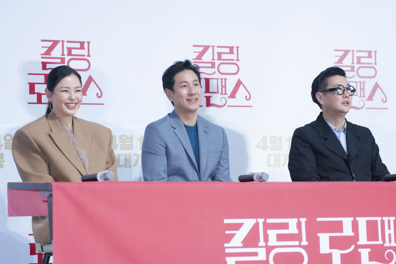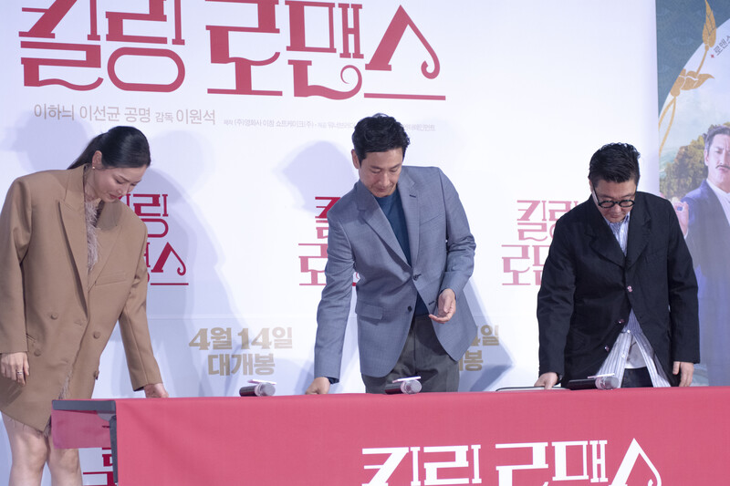 These photos, taken during the press conference of the upcoming South Korean Comedy Movie "Killing Romance" show actor Lee Ha-nee, Lee Sun-Kyun and director of the movie at the scene.