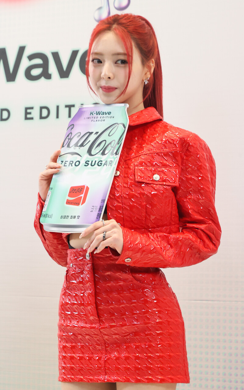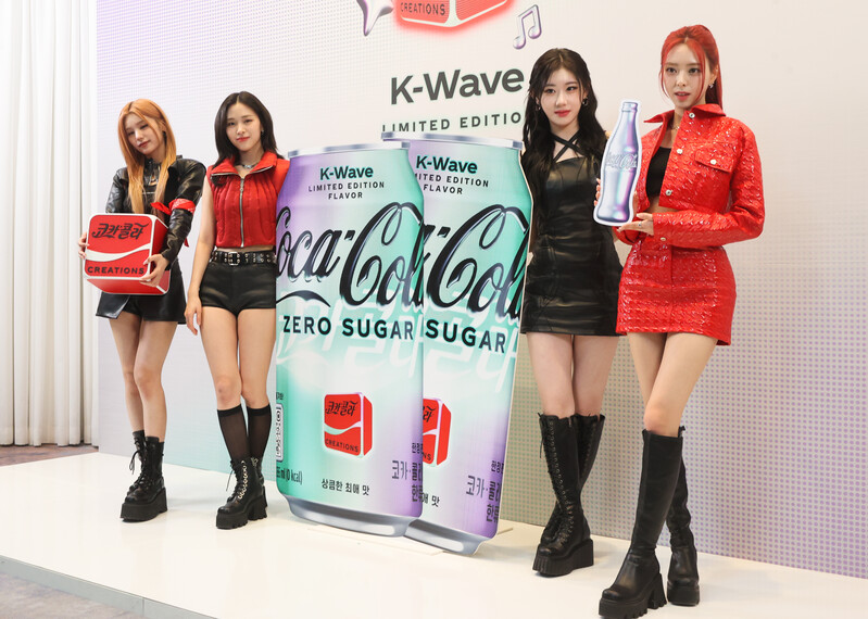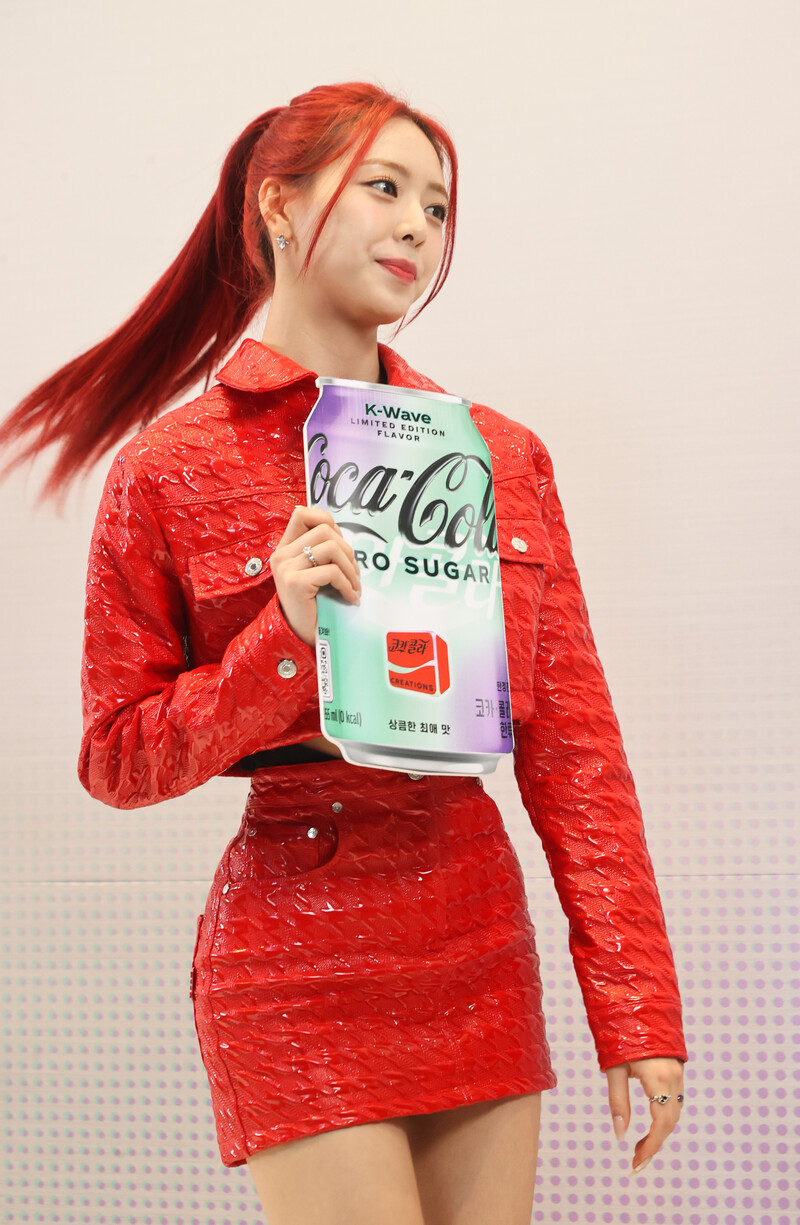 Members of South Korean girl group ITZY, are posing for their individual and group photos during a publicity event in Seoul on Feb. 20, 2024 to promote the Coca-Cola's limited edition "K-Wave." (Yonhap)