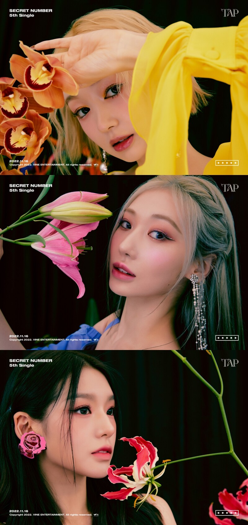 These photos, provided by Vine Entertainment shows individual concept photos of K-pop girl group Secret Number for their upcoming 5th mini album "Tap."