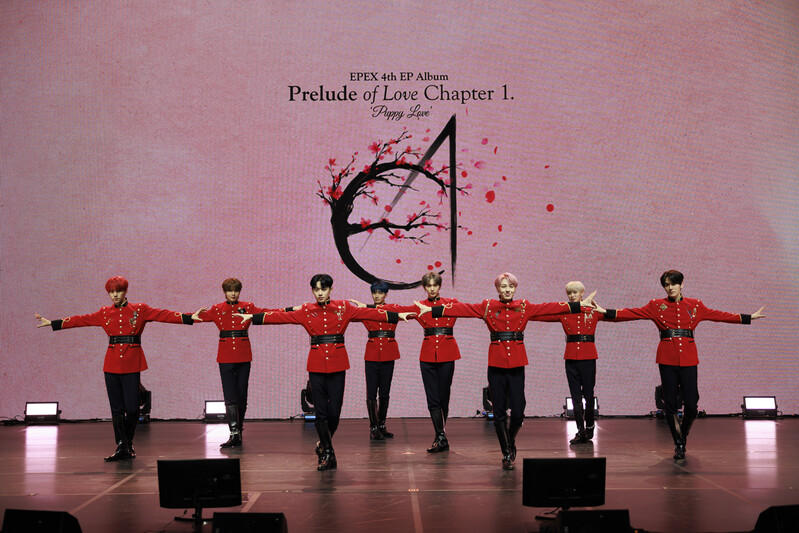 These photos, provided by C9 Entertainment, show boy group EPEX's group photo during their online media showcase which was held on October 26, at 5.p.m. (KST).