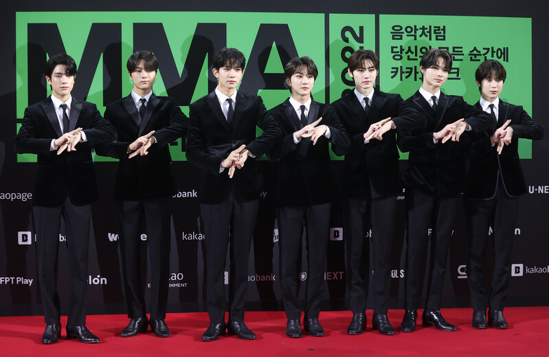 Photos of K-pop boy group ENHYPEN during photo time at "MMA 2022" (Melon Music Award) hosted by Kakao Entertainment at Gocheok Sky Dome in Seoul on November 26. (Yonhap)