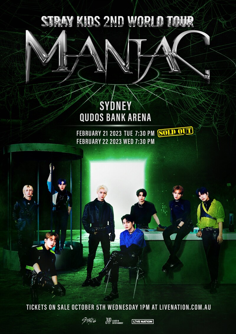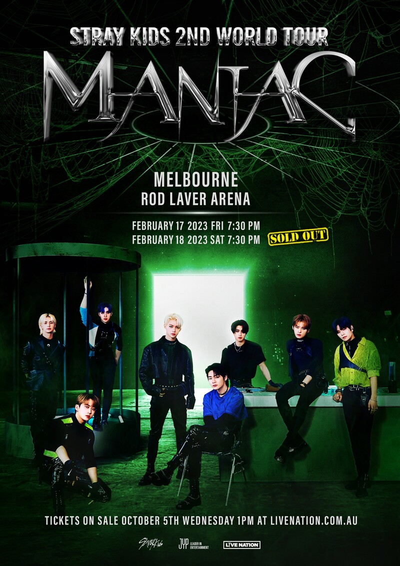These photos, provided by JYP Entertainment, shows posters for Stray Kids 2nd World Tour 'MANIAC' has been all sold out in Australia.