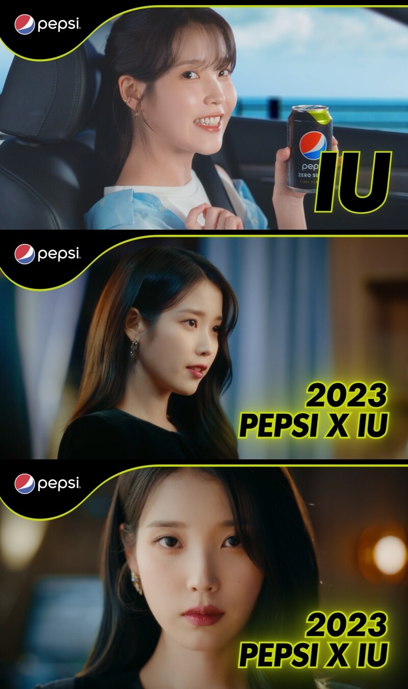 These photos, provided by Pepsi Korea, show part of the K-pop singer IU's "2023 Pepsi Project" commercial teaser video released on Dec. 31 last year.