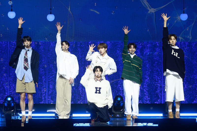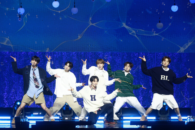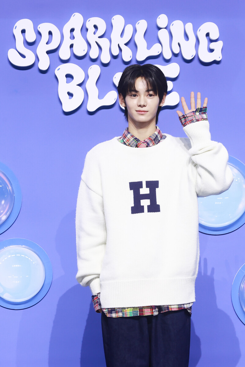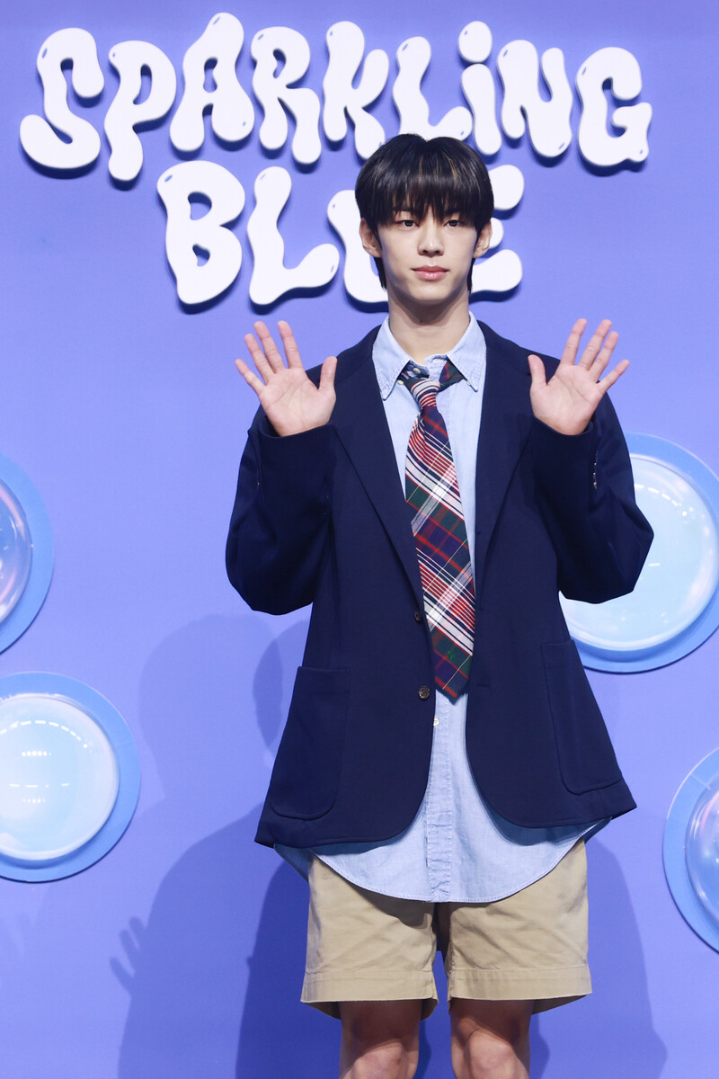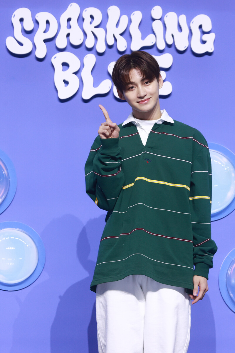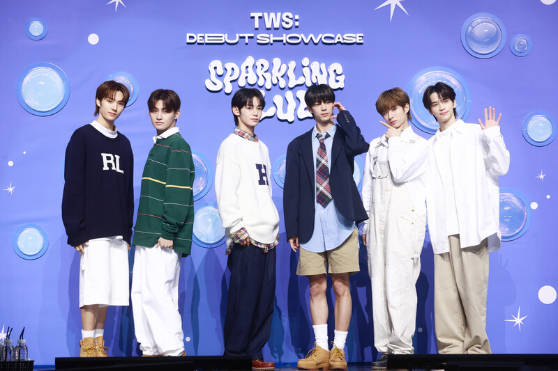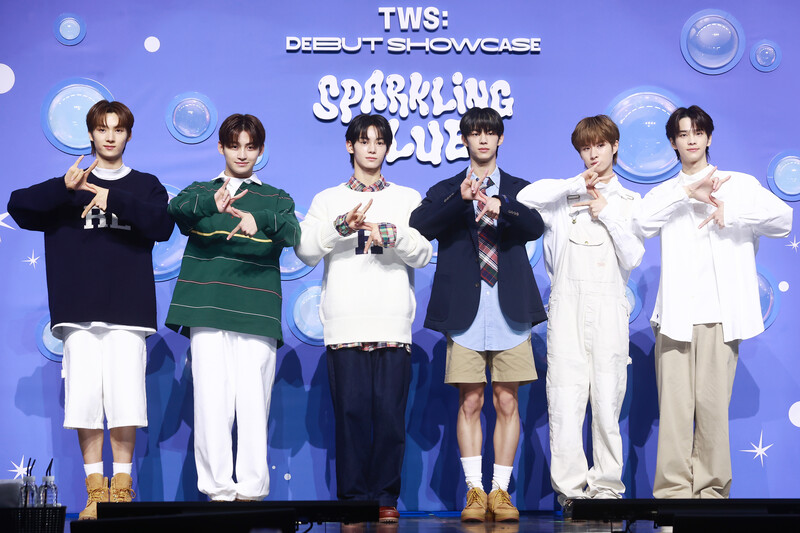 South Korean boy group TWS poses for individual and group photos during a showcase for the group's debut album "Sparkling Blue" in Seoul on Jan. 22, 2024. (Yonhap)