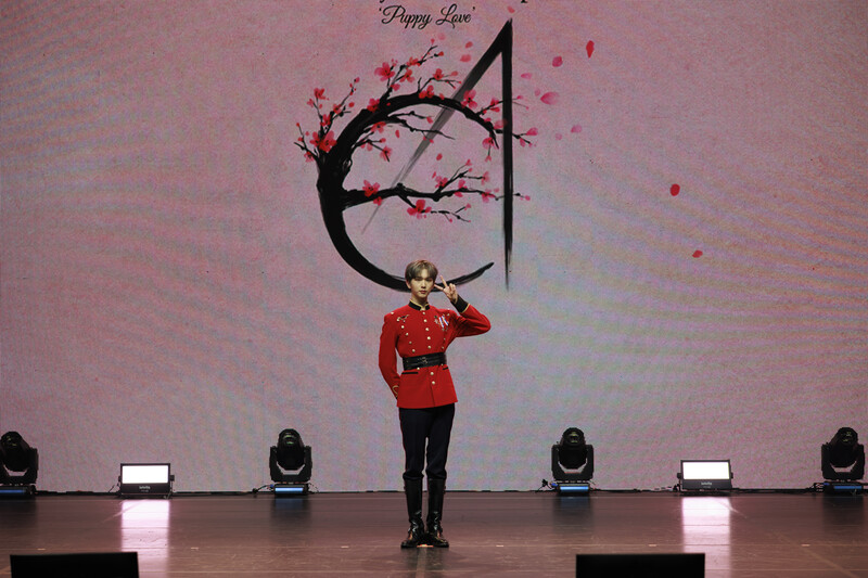 Photos of Yewang, Jeff, Ayden, and Baekseung during online media showcase for fourth EP 'Puppy Love'