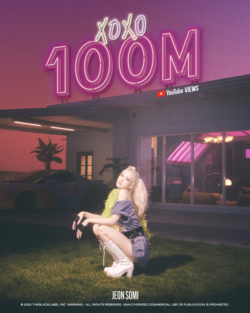 This photo, provided by The Black Label, shows celebrative poster for Jeon Somi's MV for "XOXO" exceeding over 100 million views on YoutTube.