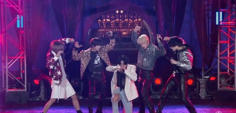 | ▲This photo captured from ABC's 'Dick Clark's New Year's Rockin' Eve' show TXT performing at Disneyland at Los Angeles. (PHOTO NOT FOR SALE) (Yonhap) |