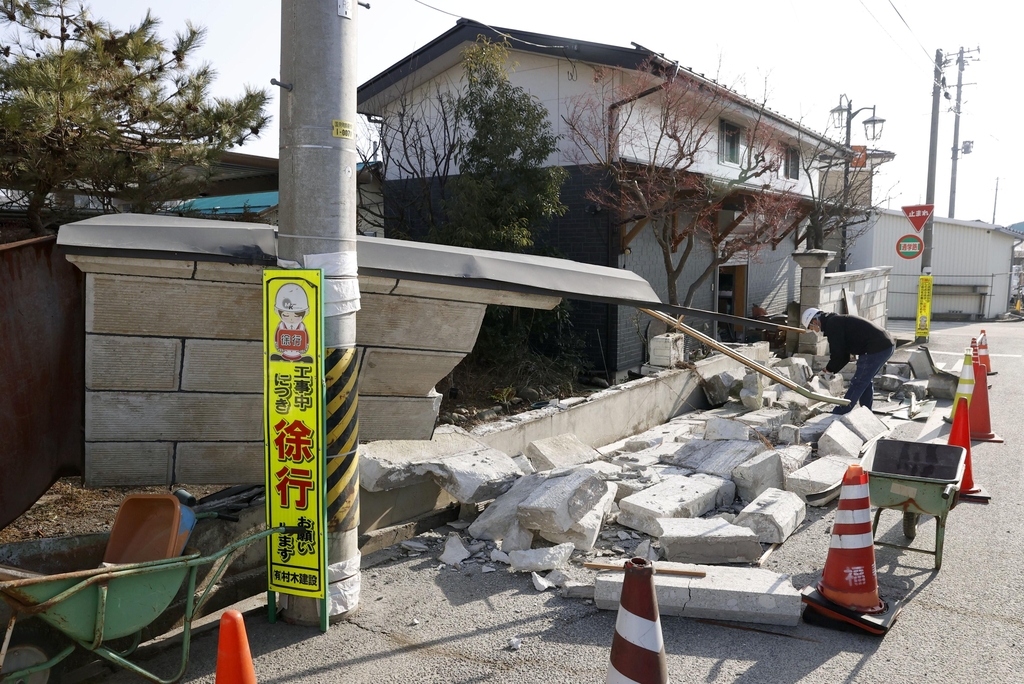 | ▲ 후쿠시마 앞바다 지진에 무너진 담장 (후쿠시마 교도=연합뉴스) 일본 후쿠시마(福島)현 앞바다에 규모 7.3의 지진이 발생한 다음날인 14일 오전 후쿠시마현의 주택가 담장이 붕괴돼 있다. |