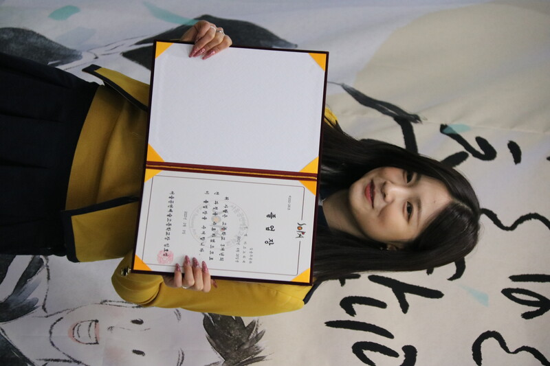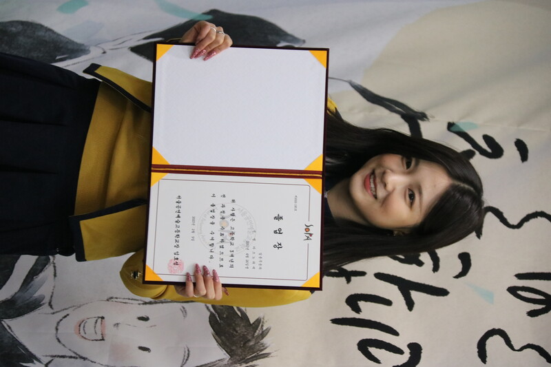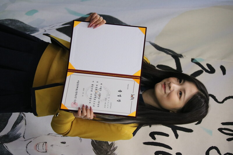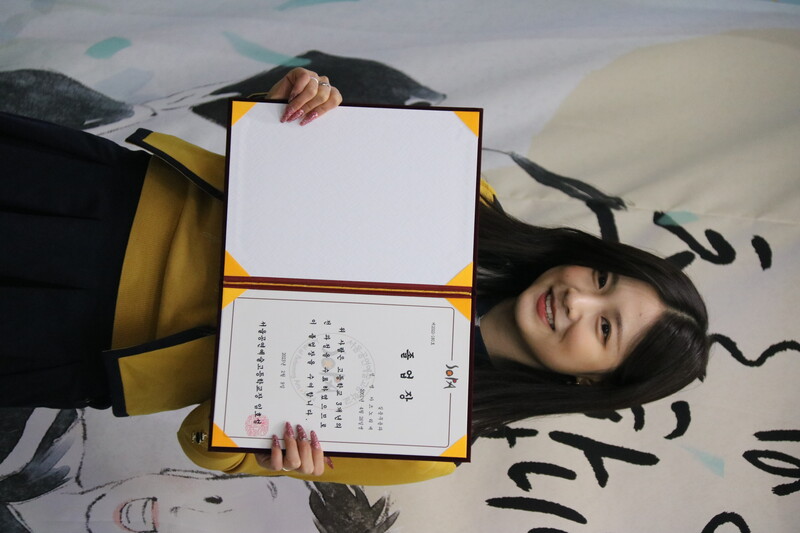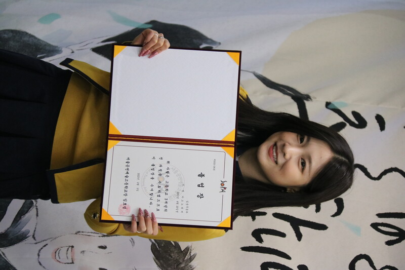 These are the photos of REMI, member of Cherry Bullet, attending the graduation ceremony of School of Performing Arts Seoul. she received special achievement award at the ceremony.