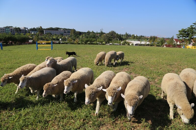 | ▲ This photo shows a number of sheep grazing along Korea's largest experimental theme ranch, Anseong Farmland. (Yonhap) |