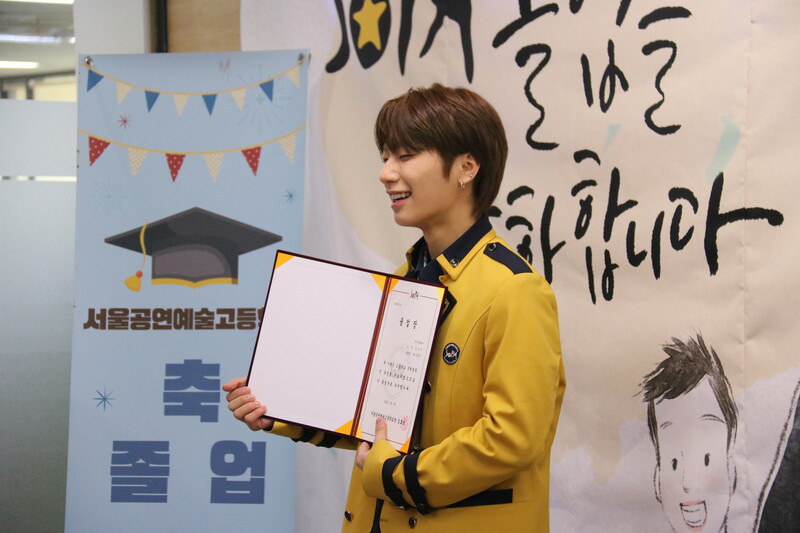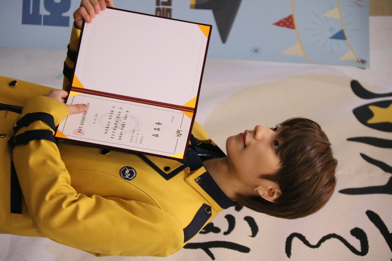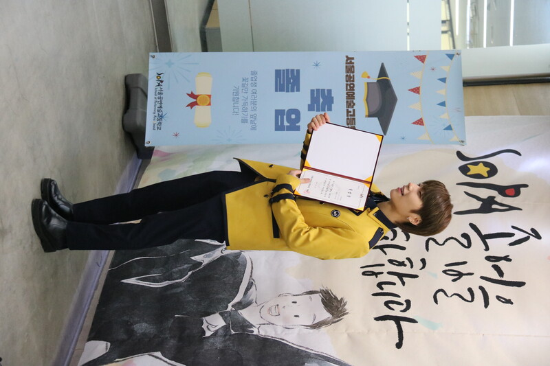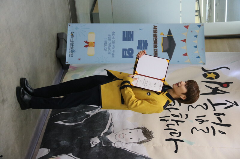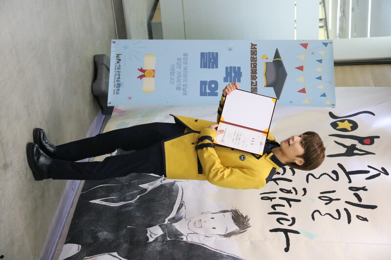 These are the photos of HI CUTIE member Yun Eungi and Blitzers member Wooju attending the graduation ceremony of School of Performing Arts Seoul. They received special achievement award at the ceremony.
