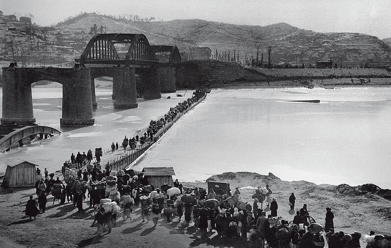 | ▲Refugees cross the temporary bridge under the footbridge over the Han River (now the Hangang Bridge), which was destroyed during the Korean War. 1951 [Provided by the National Archives] |