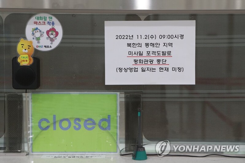 Dora Observatory and the third tunnel in Paju, Gyeonggi Province, have been closed for three days and are not allowing visitors' access, while Imjingak Gondola has been operating normally since November 3.