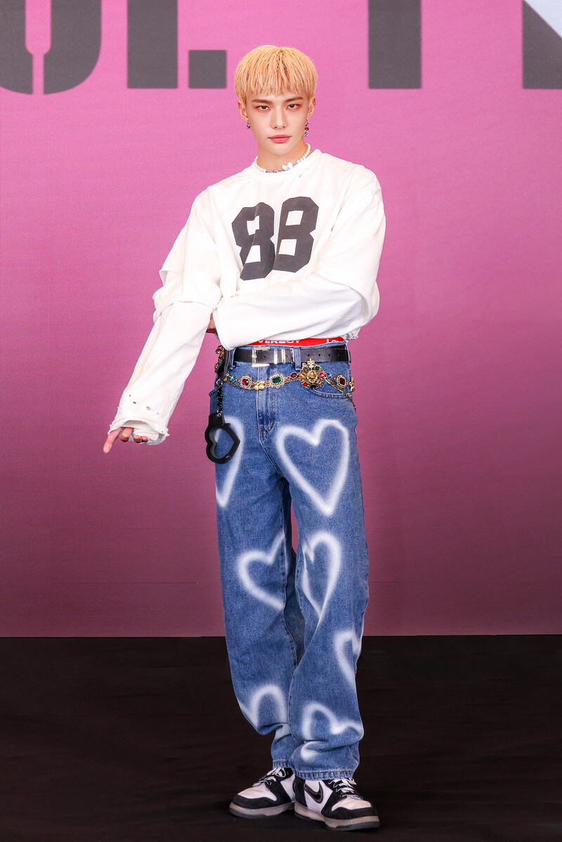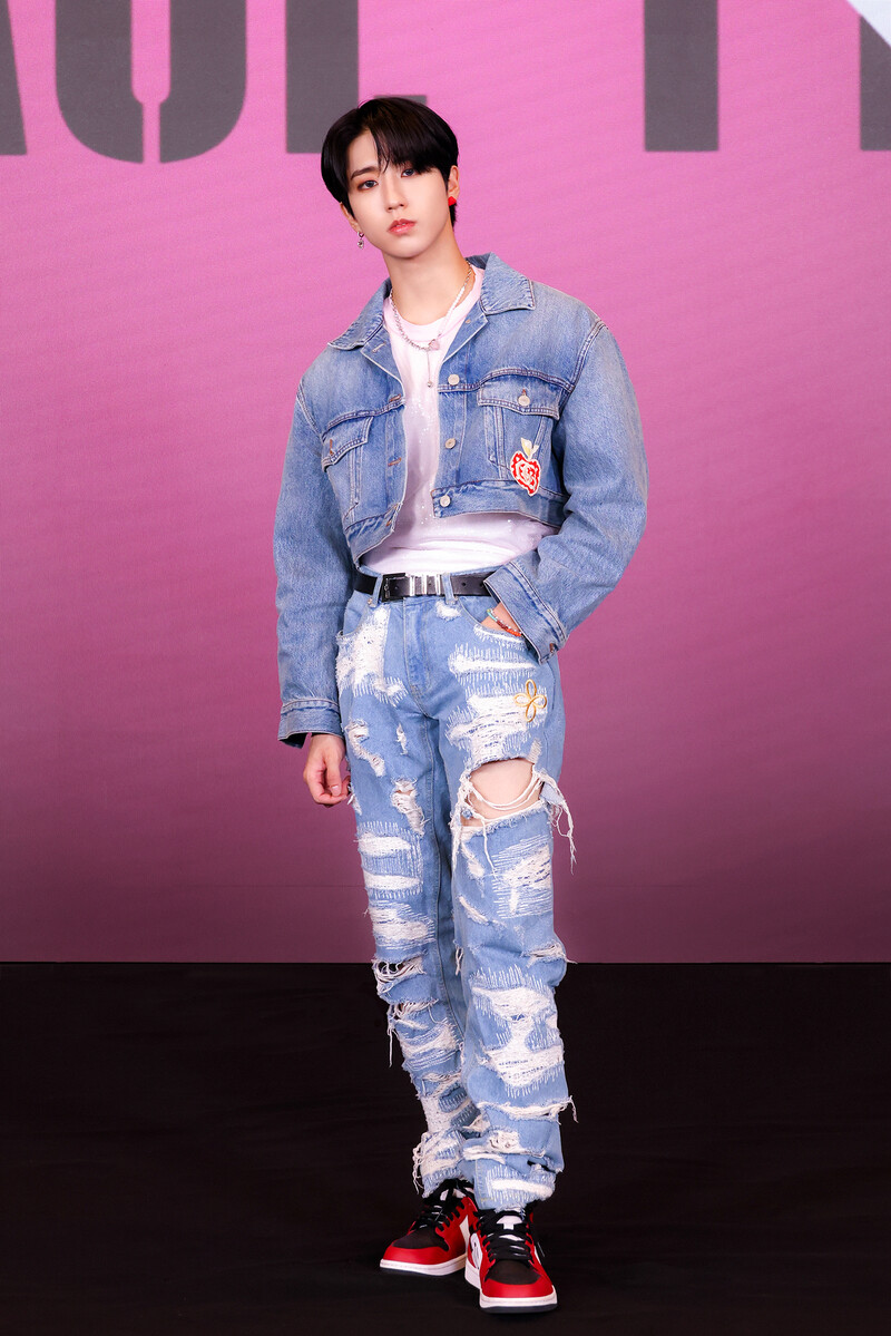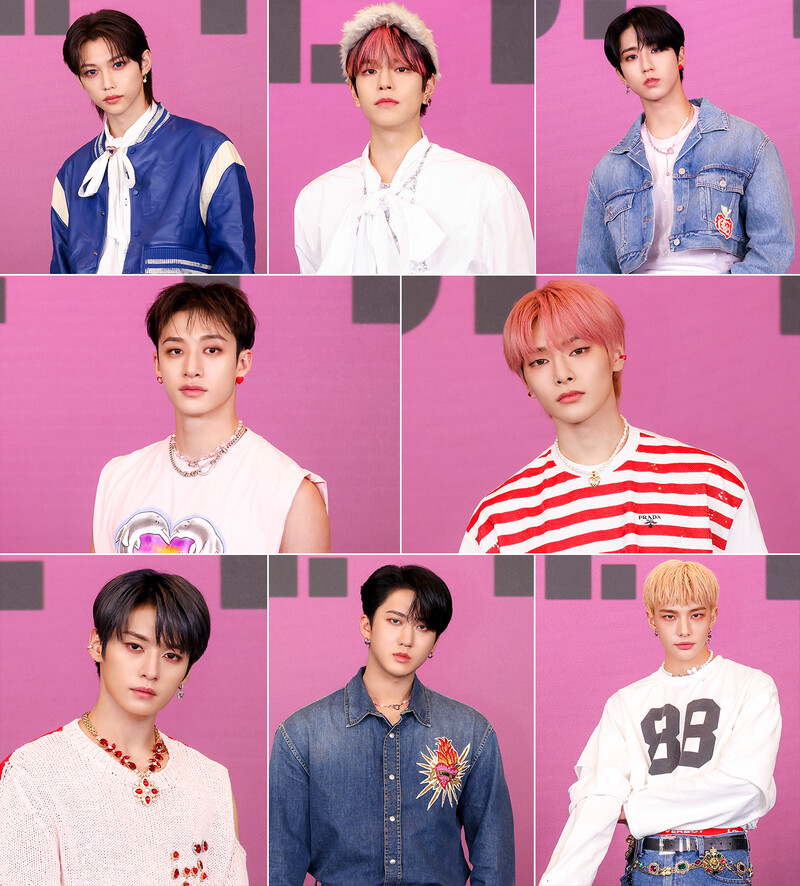 These photos provided by JYP Entertainment shows individual and group photos of K-pop boy group Stray Kids during the press conference held for their upcoming mini album "MAXIDENT" which will be released on September 7.