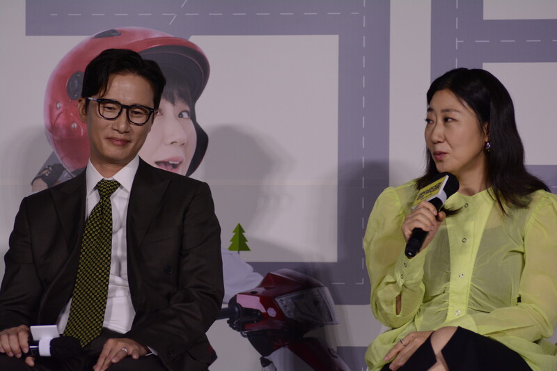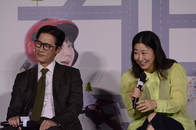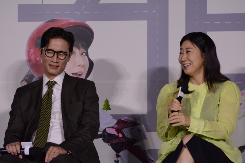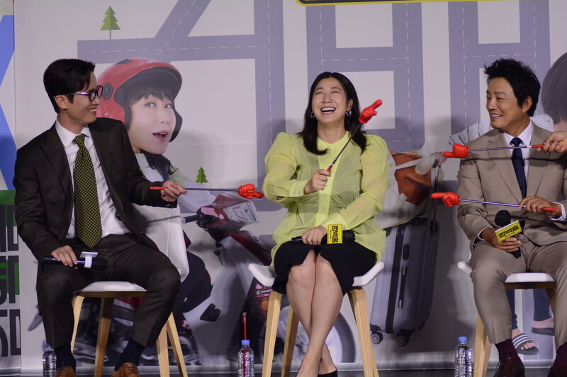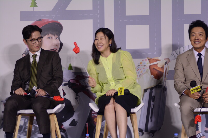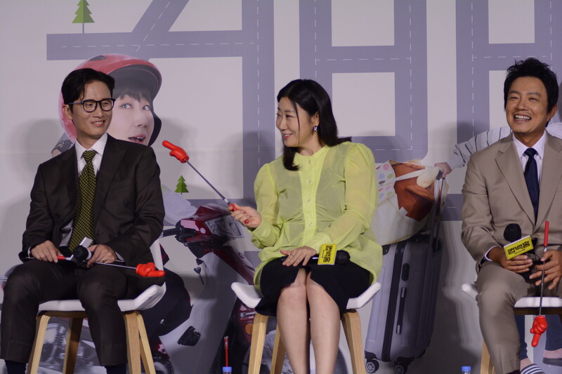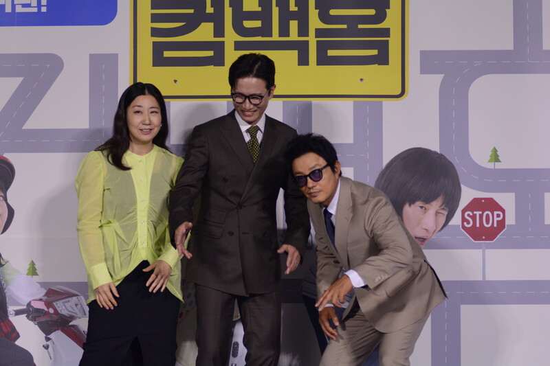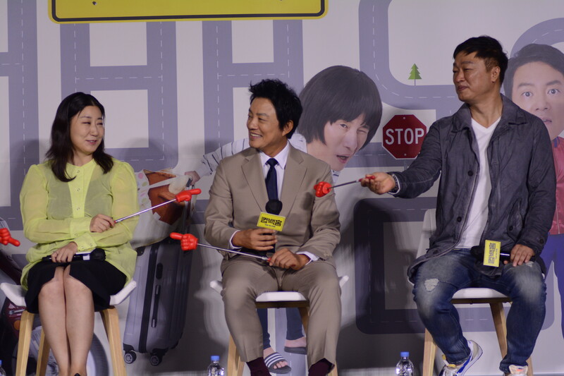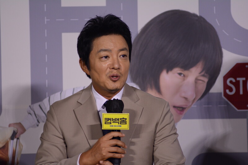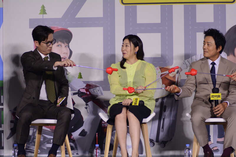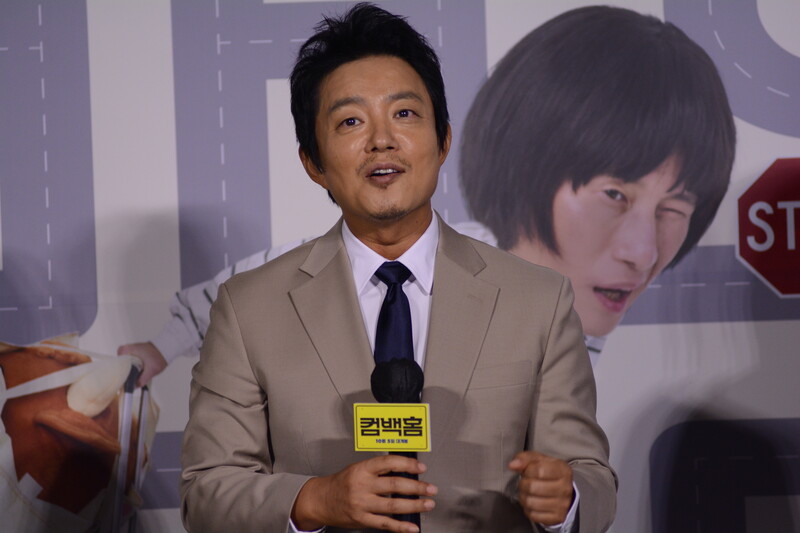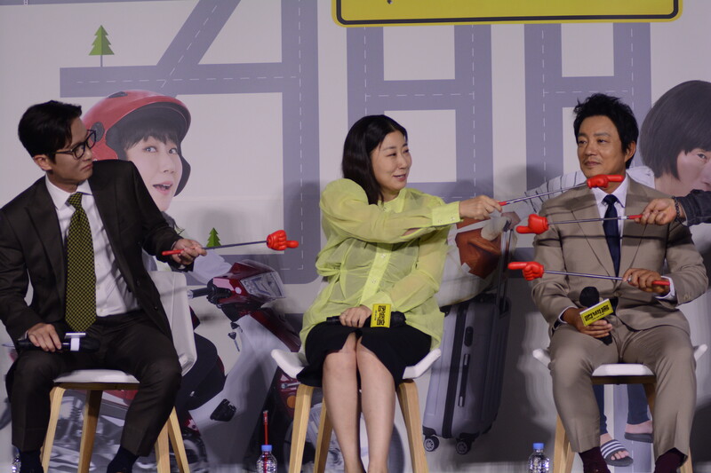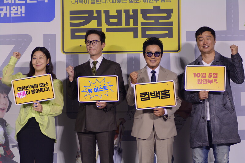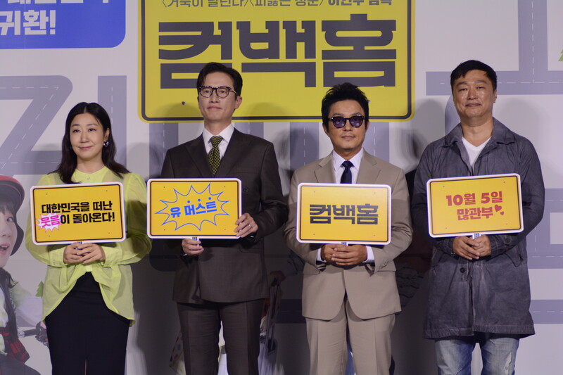These, photos, taken during the press conference of the upcoming south Korean comedy movie Come Back Home, shows actors Lee Beom-soo, Song Sae Byeok, actress Ra Mi-ran and director Lee Yeon-woo.