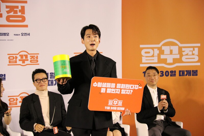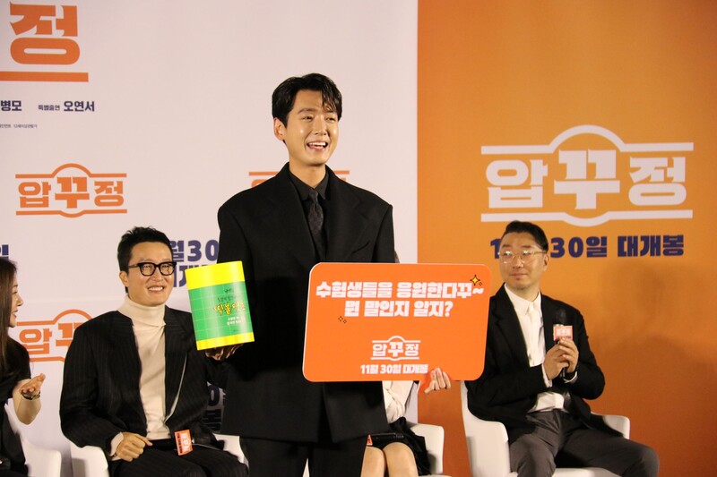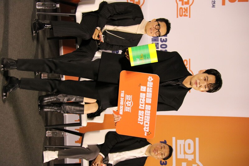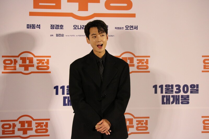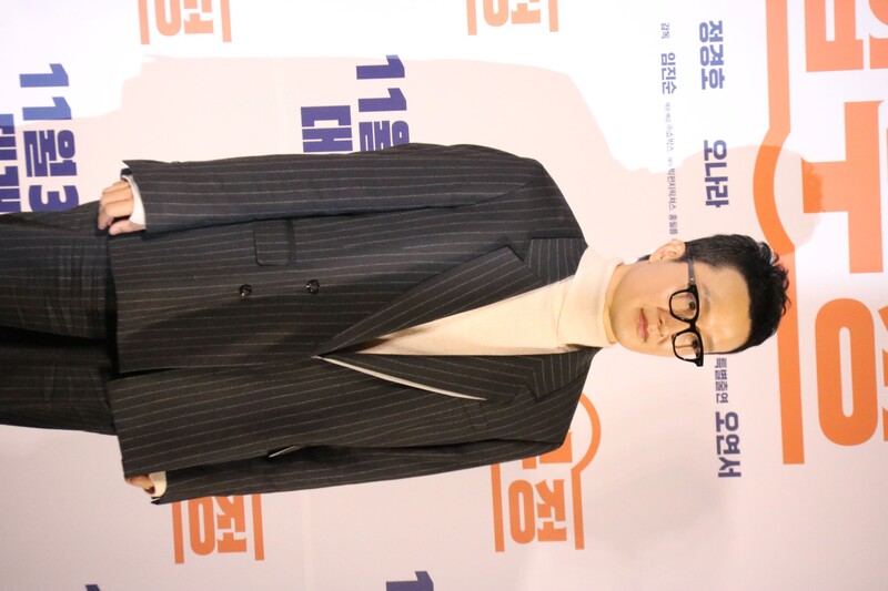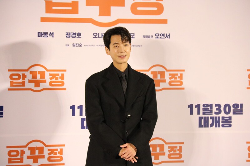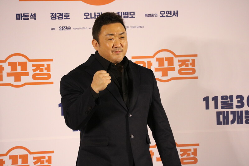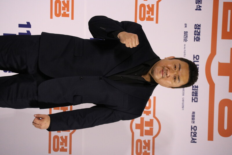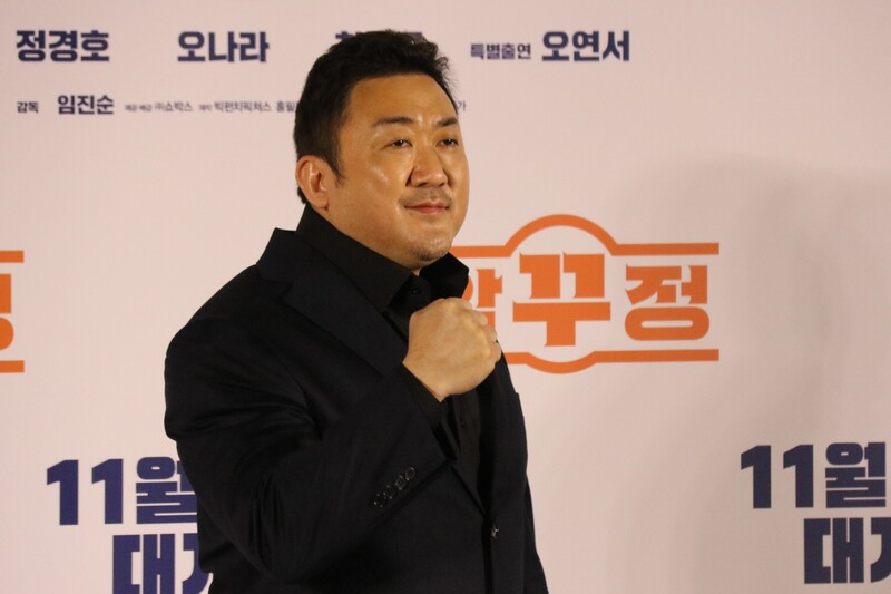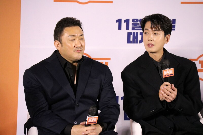 These photos, taken during the press conference of the upcoming South Korean movie "Men of Plastic" show cast members Ma Dong-seok, Jung kyung-ho, Choi byung-mo, actress Oh Na-ra and Oh Yeon-seo.