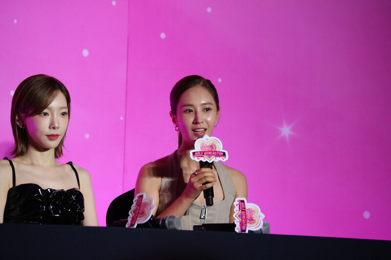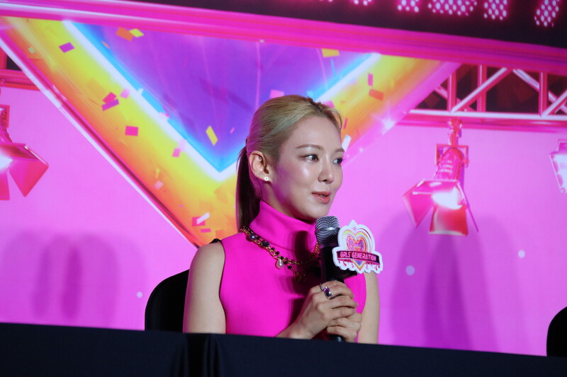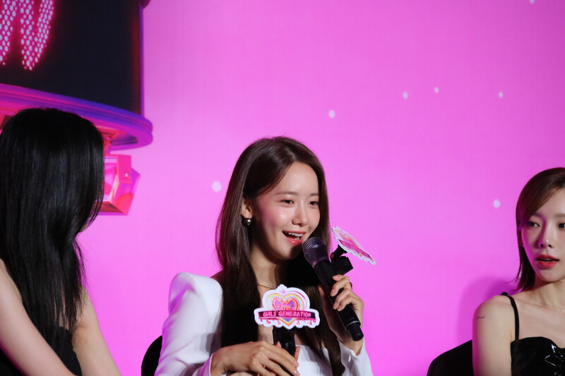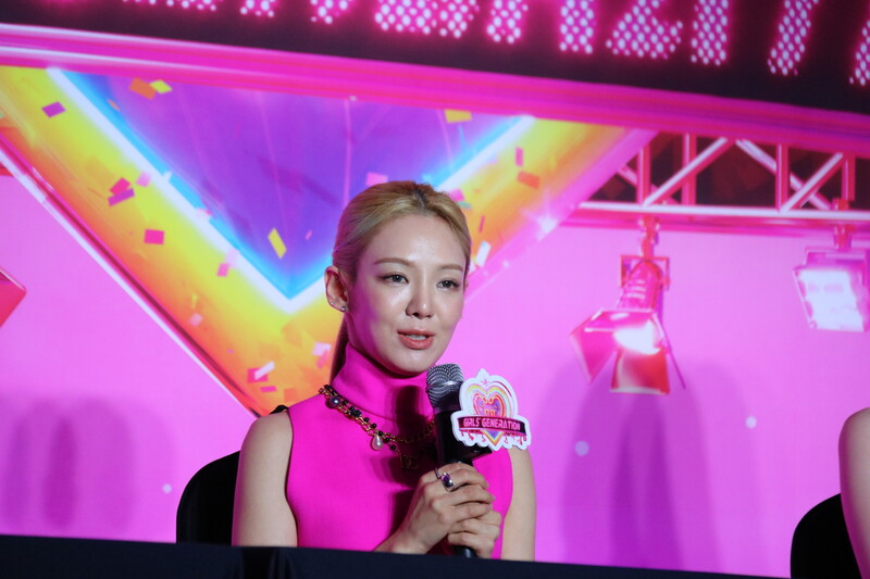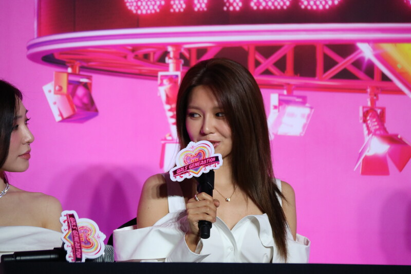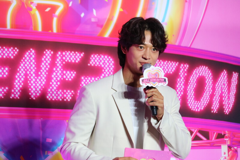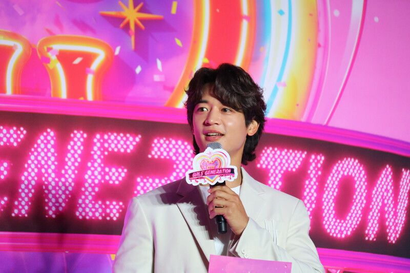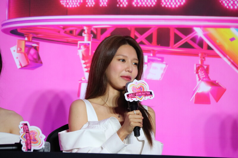These photos taken during the Q&A session of the comeback press conference of Girls Generation's 7th full length album "Forever 1" photos of Girls Generation members and the main MC SHINee's Min-ho