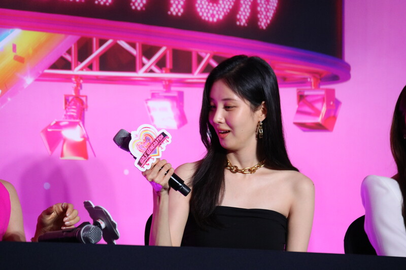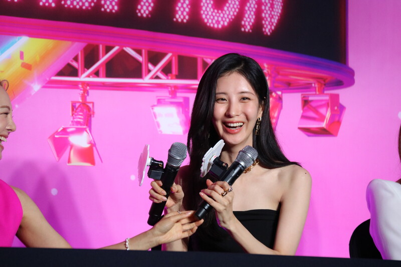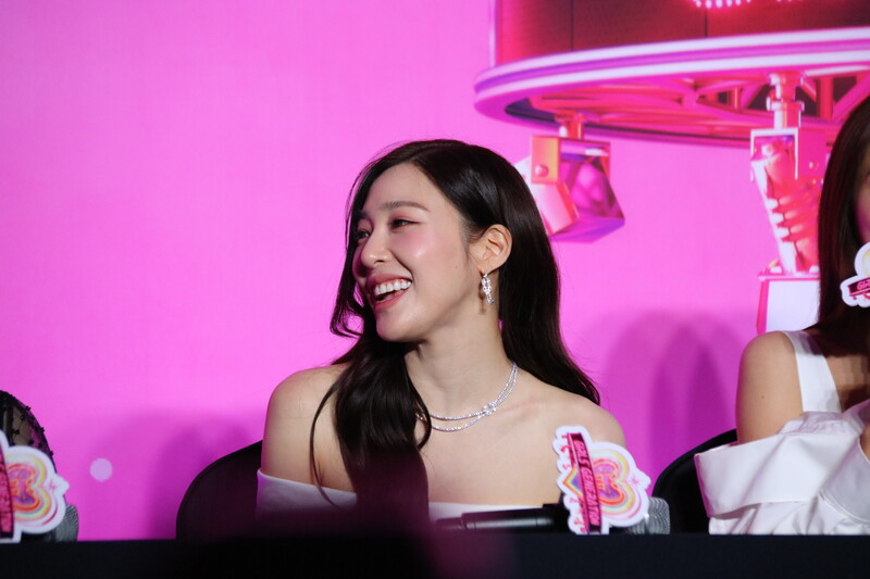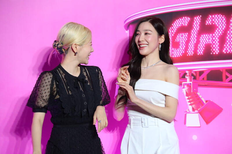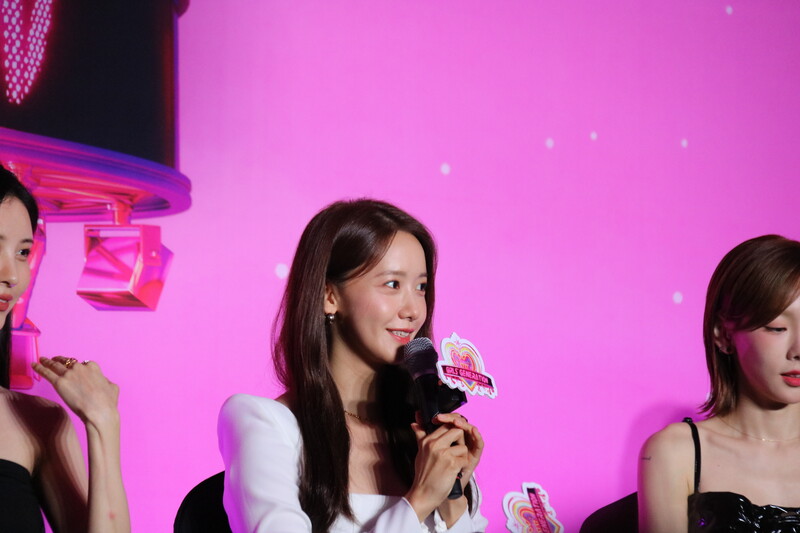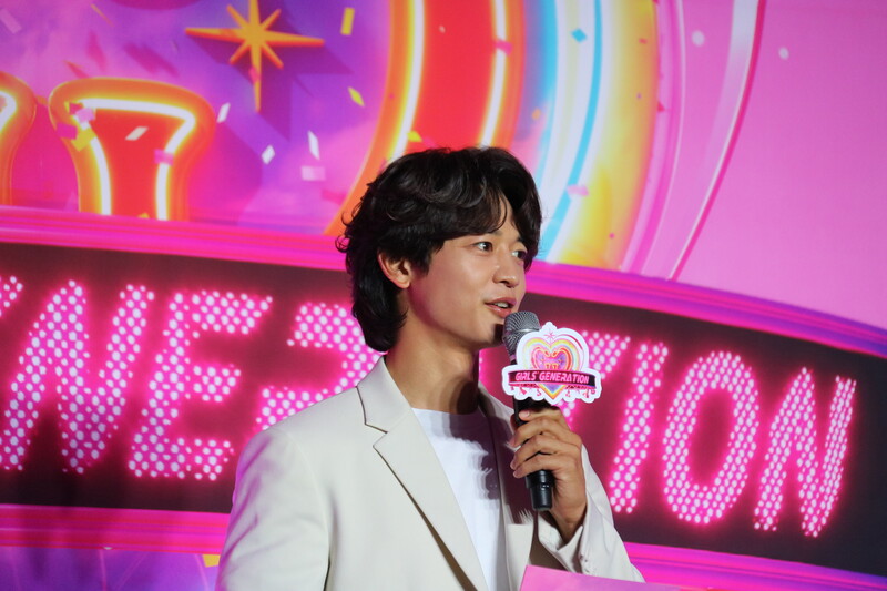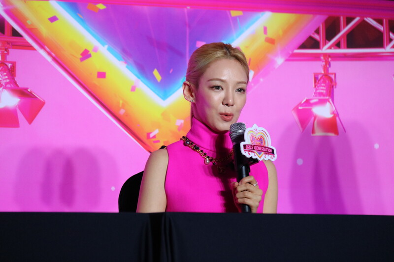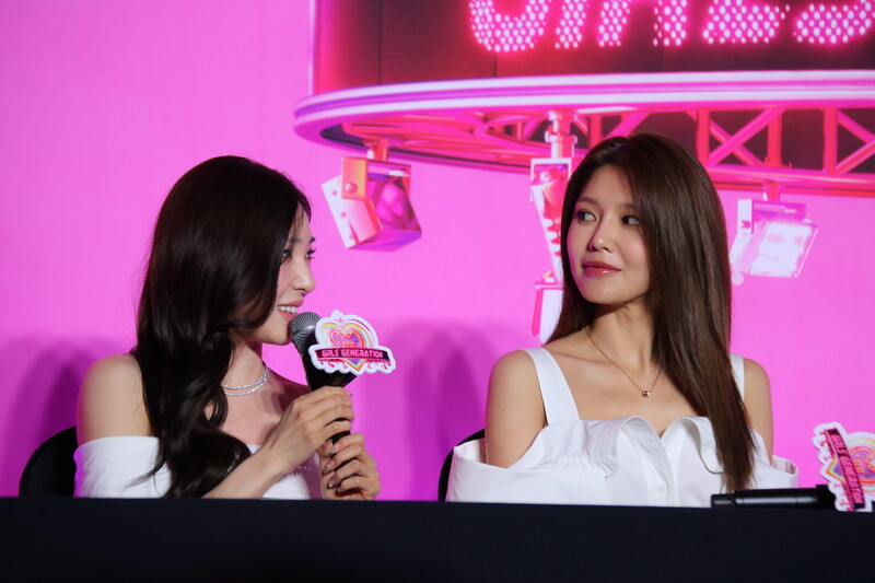 These photos taken during the Q&A session of the comeback press conference of Girls Generation's 7th full length album "Forever 1" photos of Girls Generation members and the main MC SHINee's Min-ho