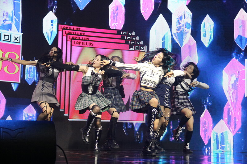 These file photos show K-pop girl group Lapillus, which held the media showcase for debut album “HIT YA!” which is set to be released on June 20 at 6 p.m. (K-odyssey)