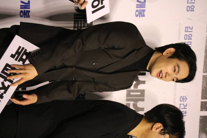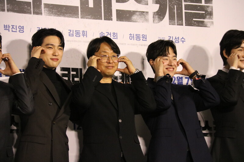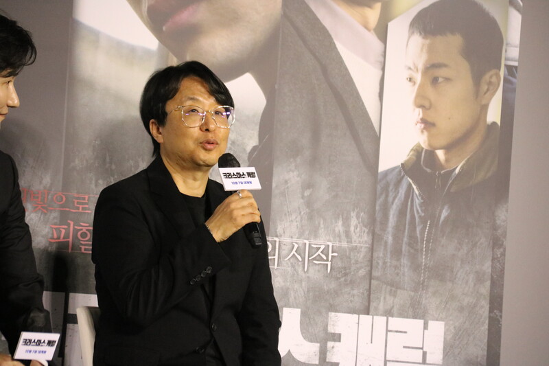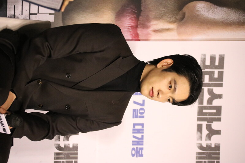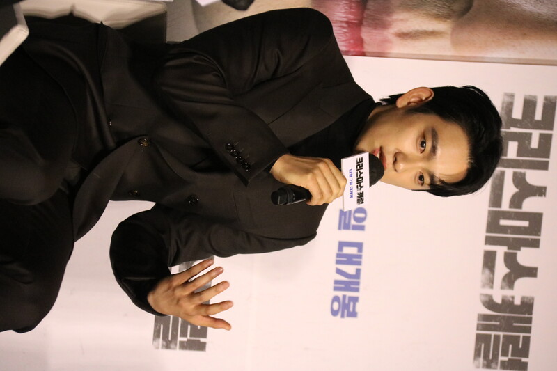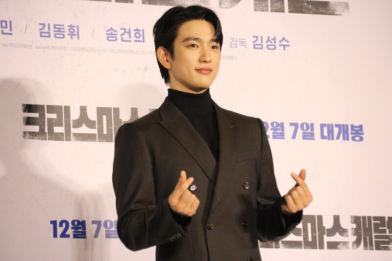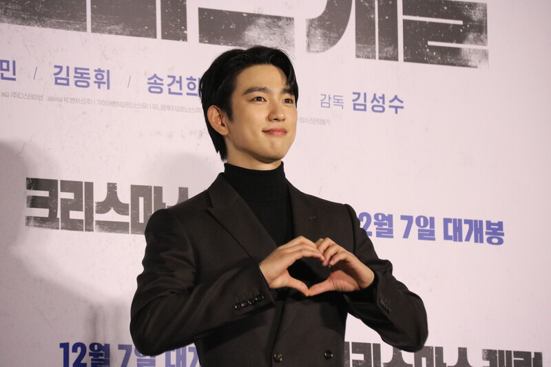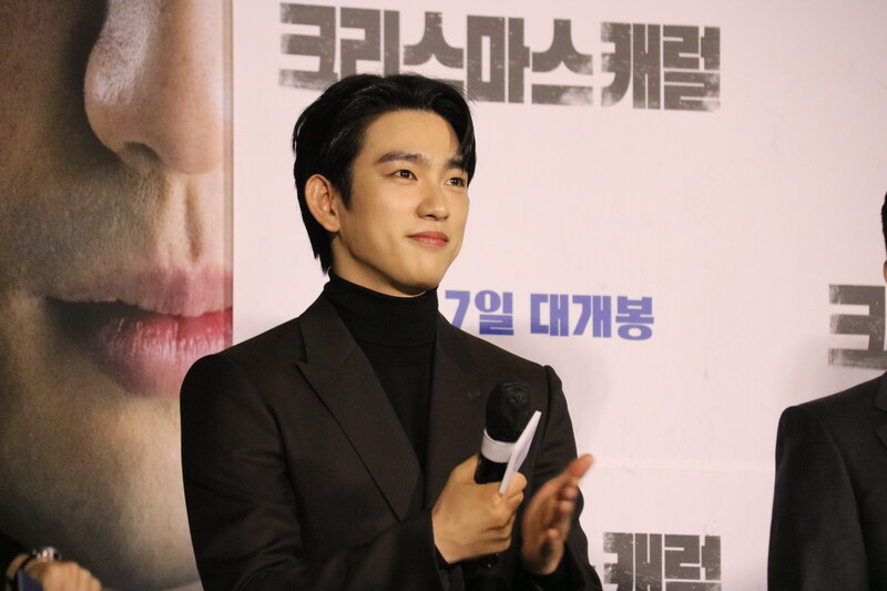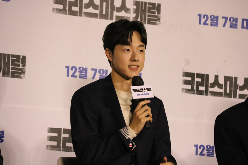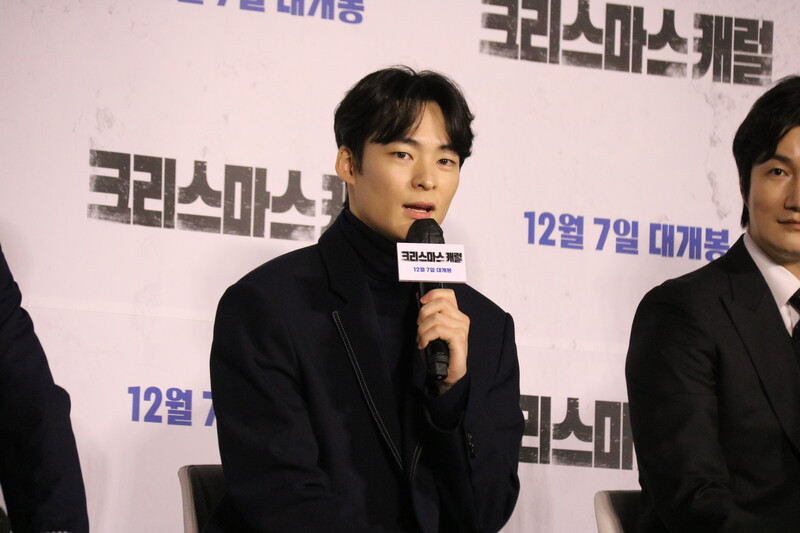 These photos show the cast of the movie "Christmas Carol" which will be released in December. Actors Park Jin-young, Kim Young-min, Kim Dong-hwi, Heo Dong-won, and Song Geon-hee participated the press conference.