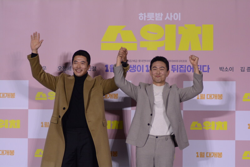 These photos, taken during the press conference of the upcoming South Korean comedy movie "Switch" Show actress Lee Min-jung, actor Kwon Sang-woo, Oh Jung-se and Kim Jun answering questions, and posing for their individuals photos.