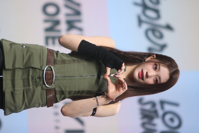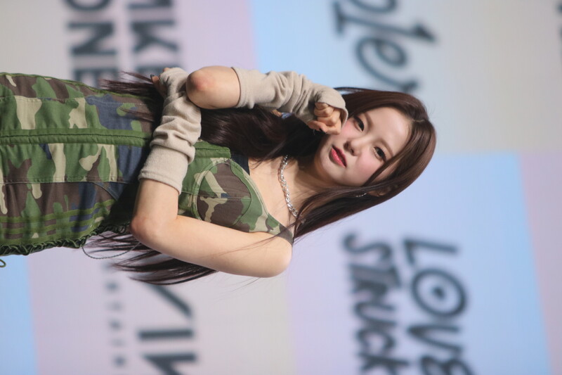 These photos show Kep1er's Choi Yu-jin, Shen Xiaoting, and Sakamoto Mashiro during the media showcase of the nine-piece group's fourth mini album "LOVE STRUCK!," led by title track "Giddy."