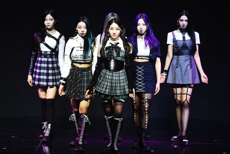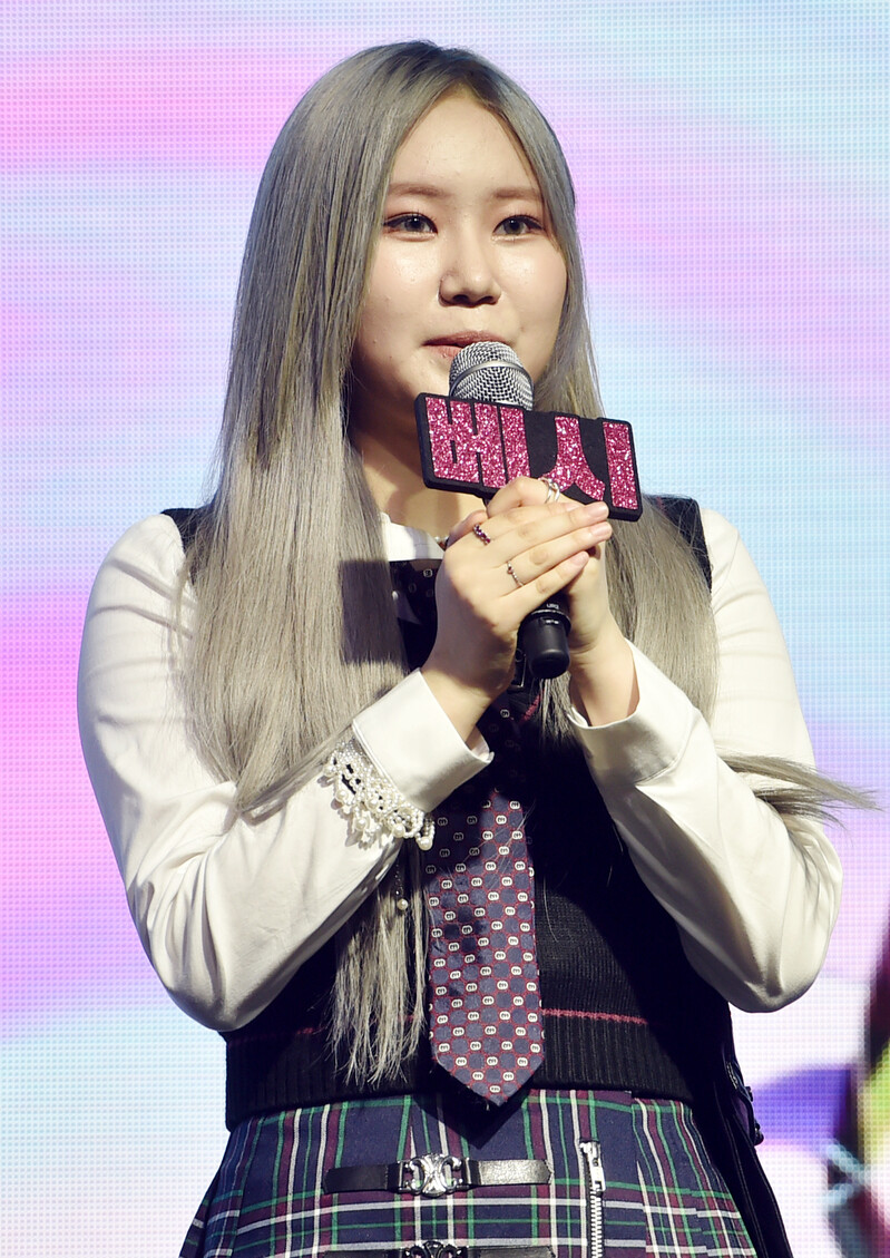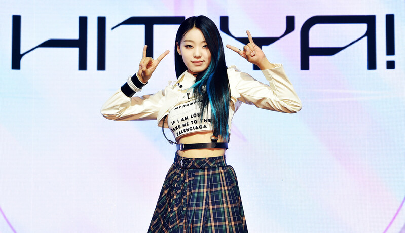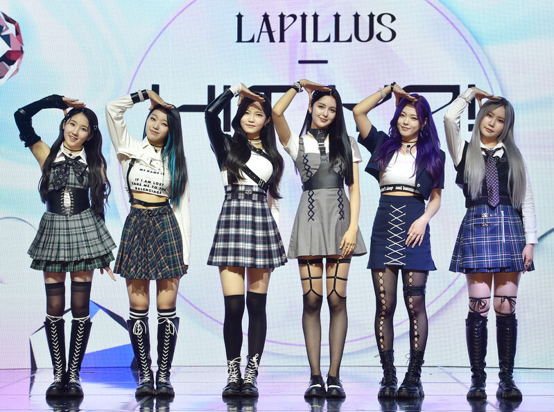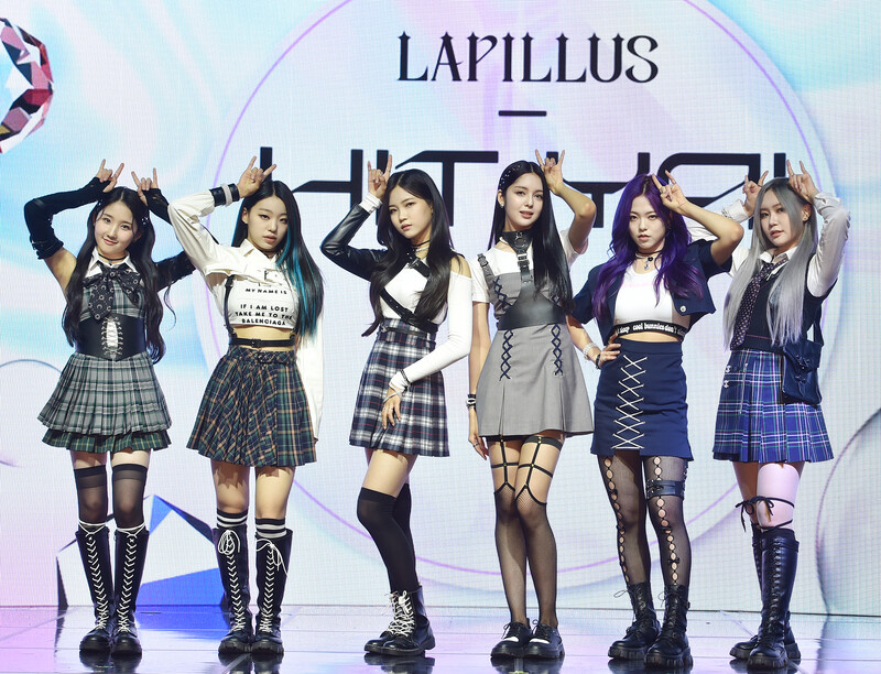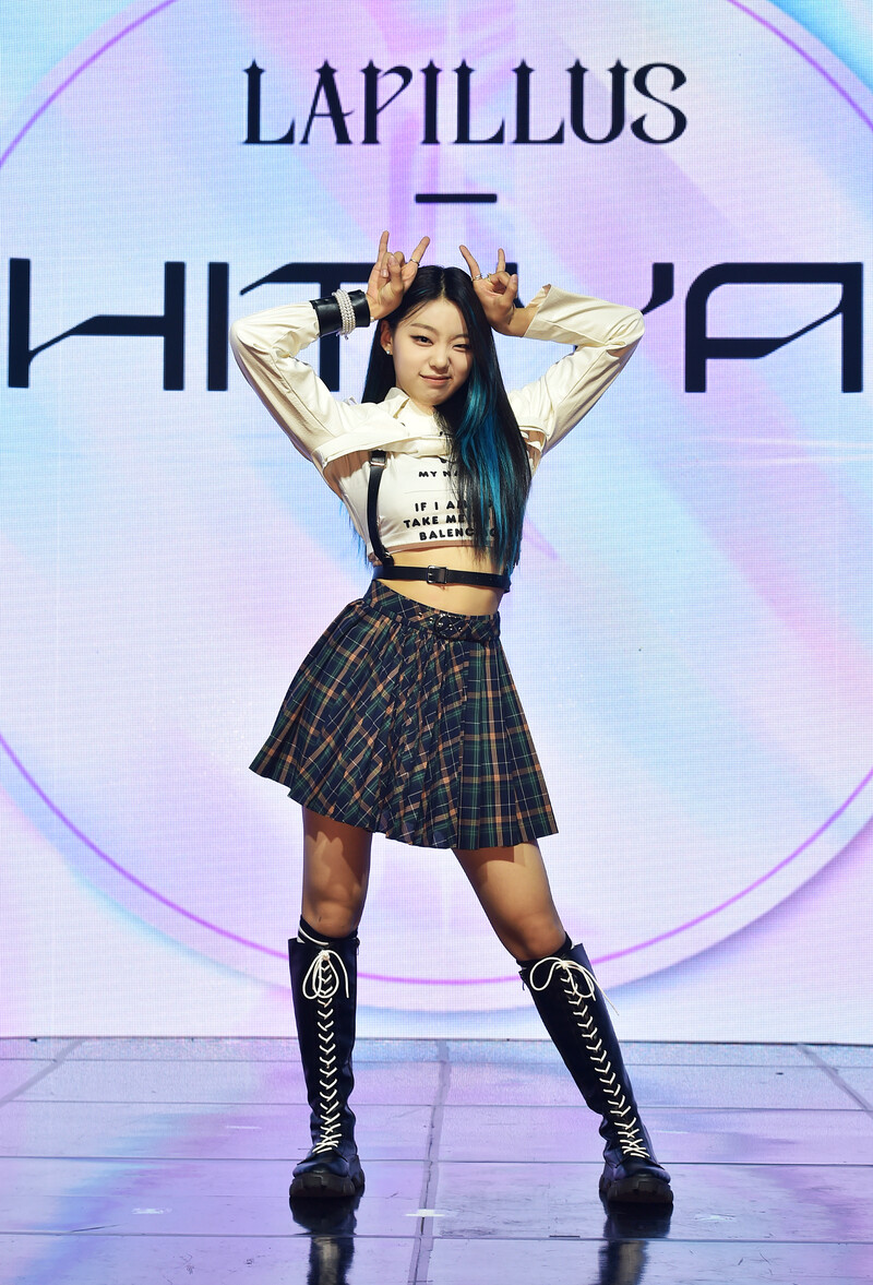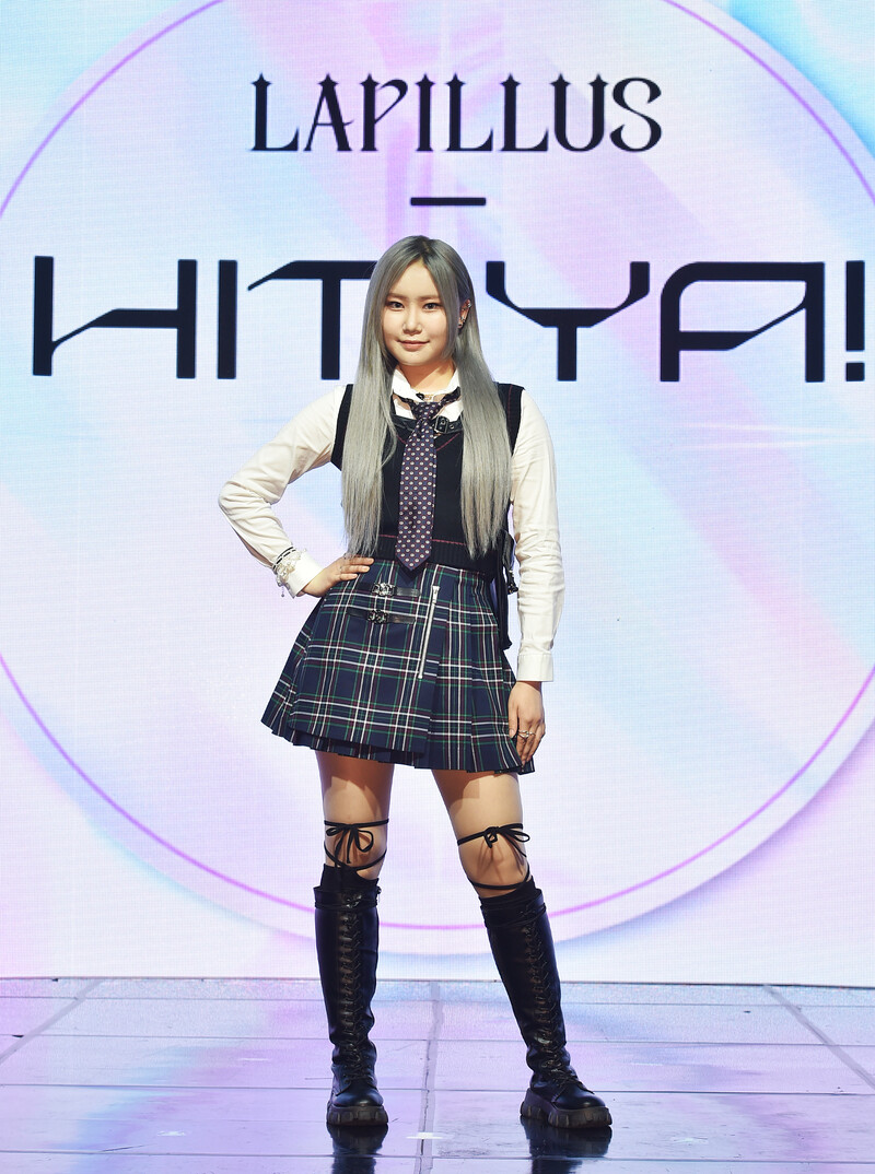 These photos, provided by MLD Entertainment, show girl group Lapillus at the media showcase of debut album "HIT YA!," which was held on June 20th, 2022.