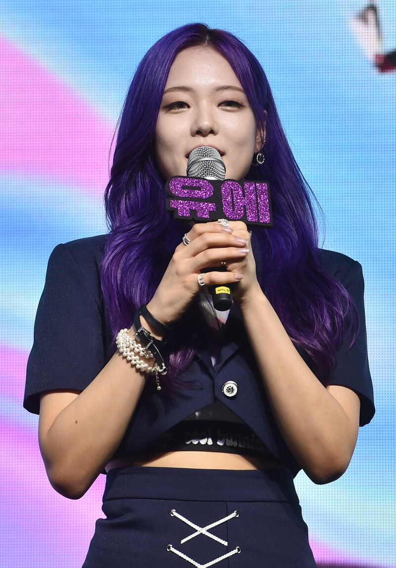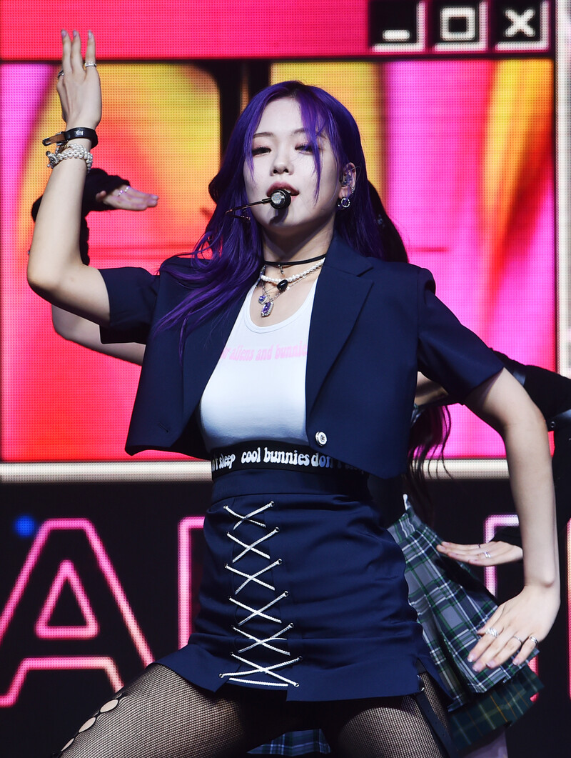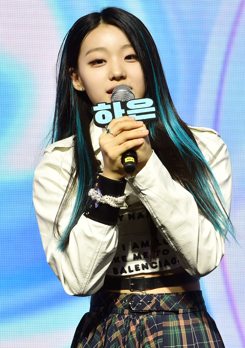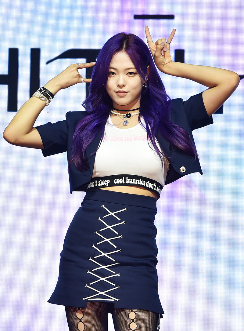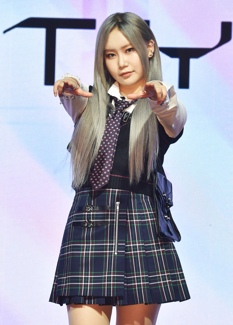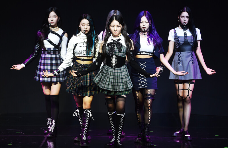 These photos, provided by MLD Entertainment, show girl group Lapillus at the media showcase of debut album "HIT YA!," which was held on June 20th, 2022.