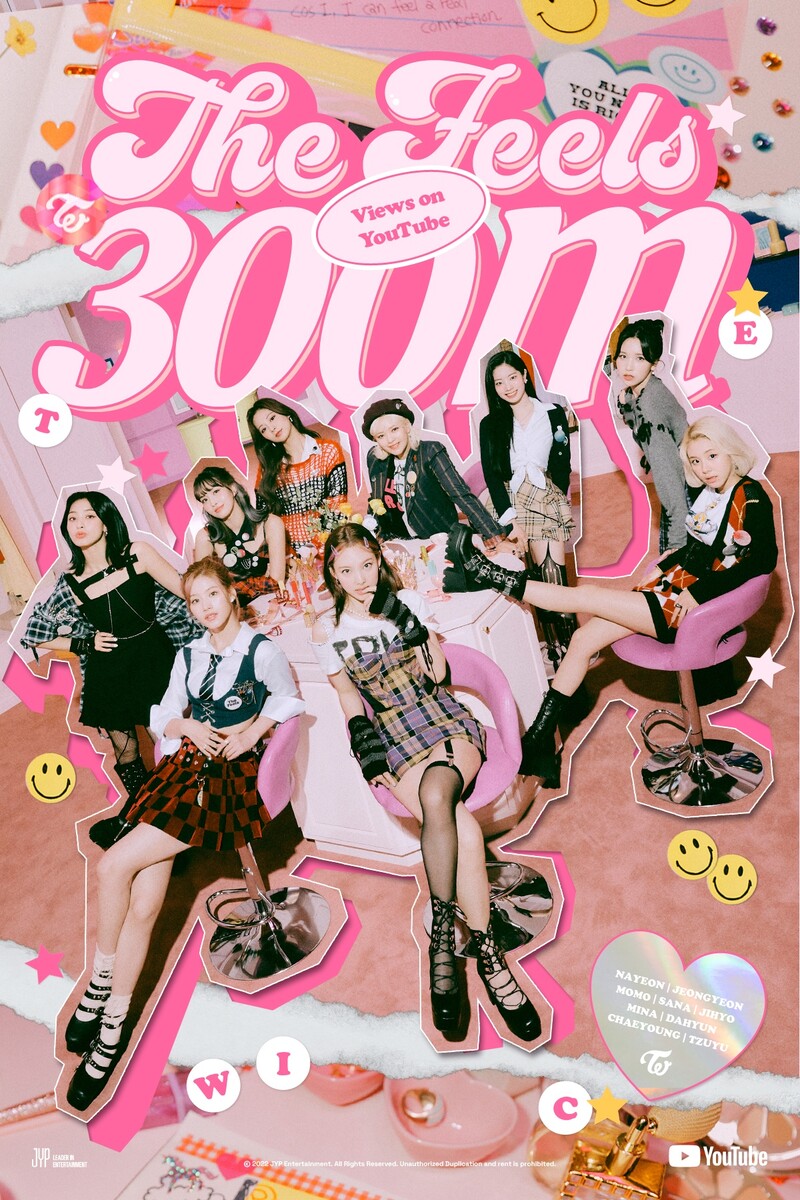 This poster provided by JYP Entertainment indicates Twice's music video of "The Feel" successfully exceeded total of 300 million YouTube views.
