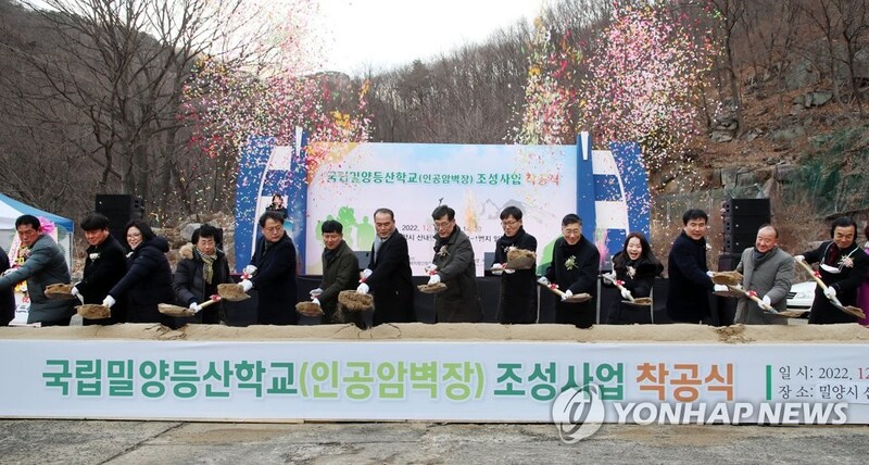 | ▲This photo, provided by Miryang citym shows groundbreaking ceremony of Miryang hiking school. (PHOTO NOT FOR SALE) (Yonhap) |