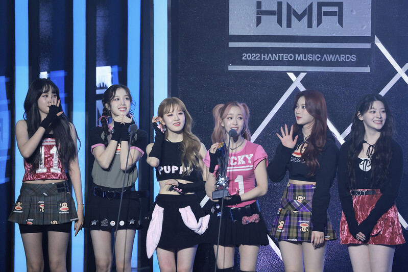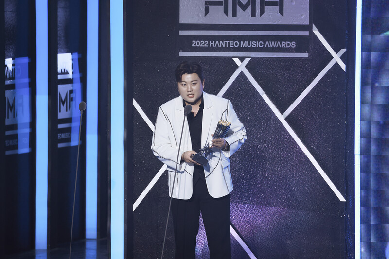 These photos, provided by Hanteo Music Awards, show Kang Daniel, STAYC, and Kim Hojoong receiving Artist of the Year at the 30th Hanteo Music Awards. BLACKPINK, Seventeen, Stray Kids, aespa, and NCT 127 also received Artist of the Year.