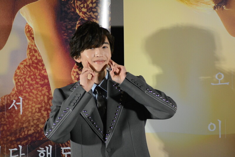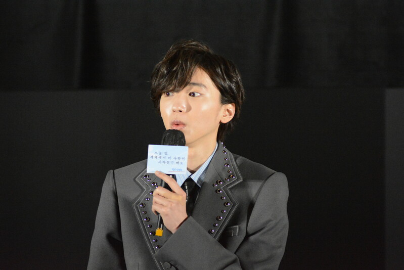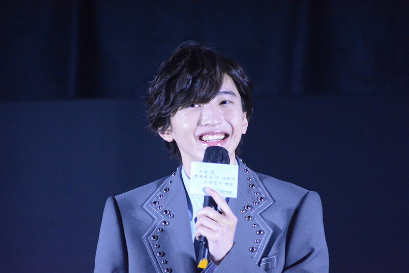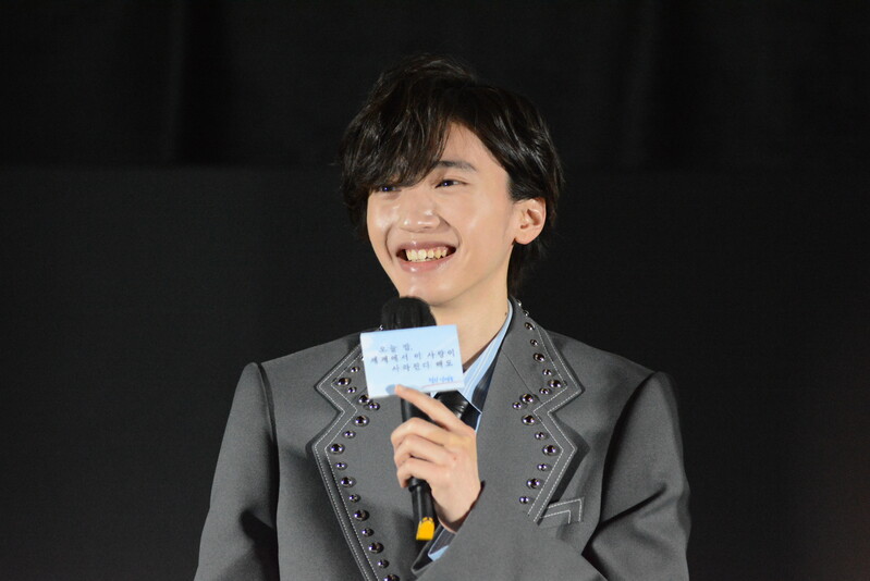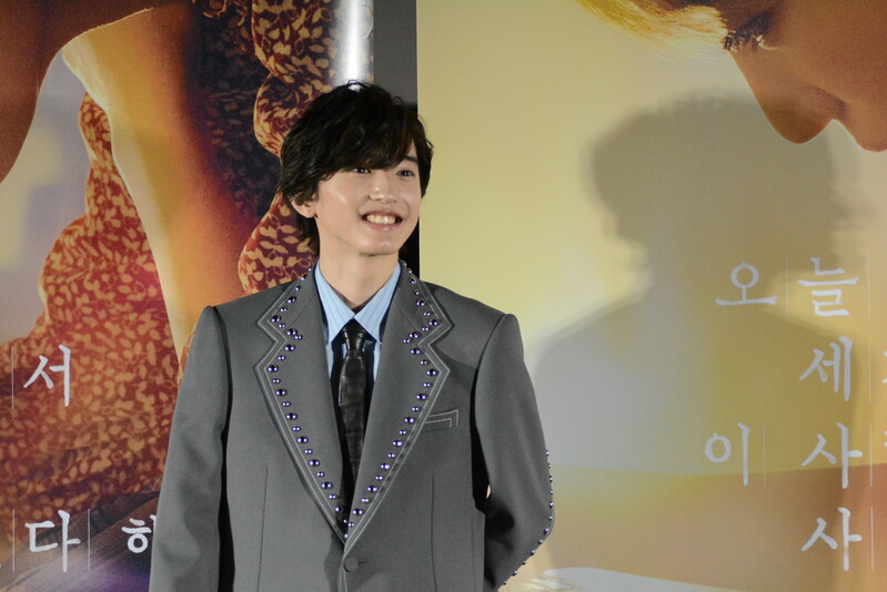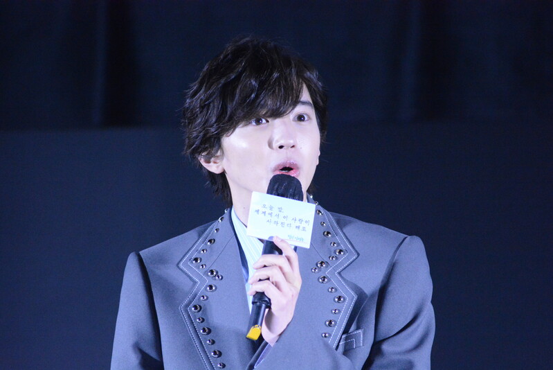These photos taken during the press conference of the movie "Even if this love disappears from the world tonight" show actor Michieda Shunsuke who played the role of the protagonist Kamiya Tooru.