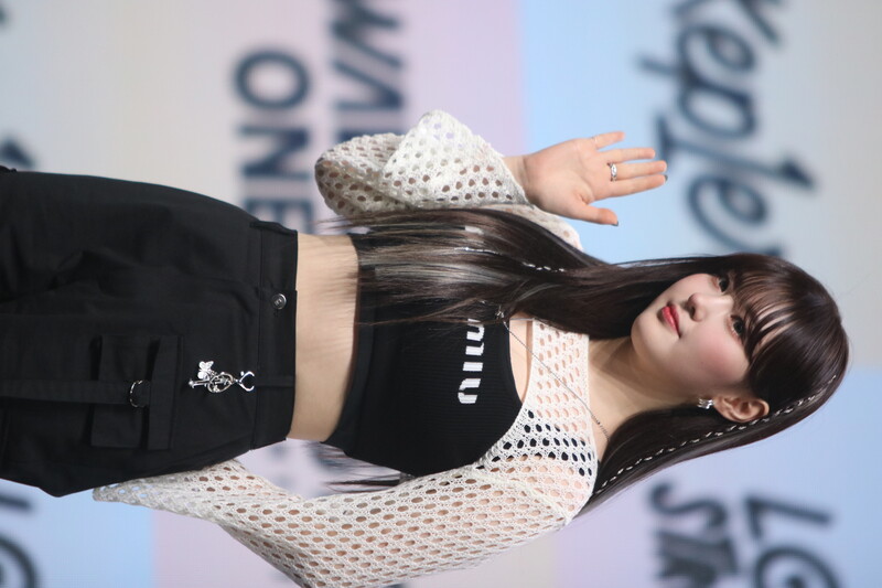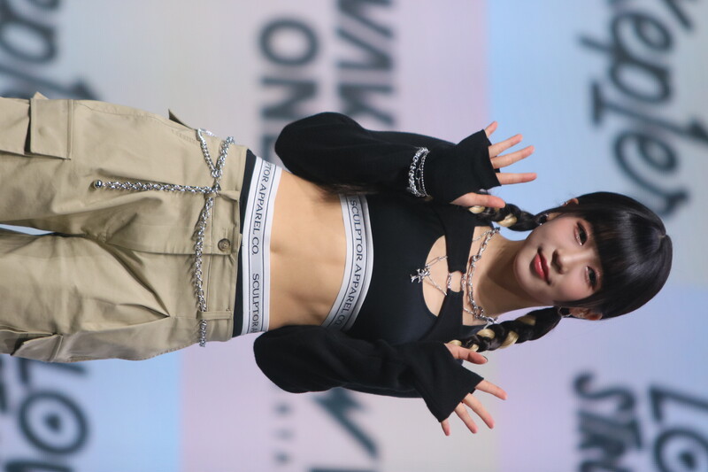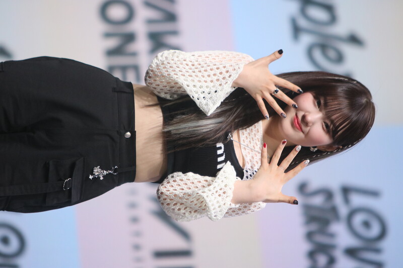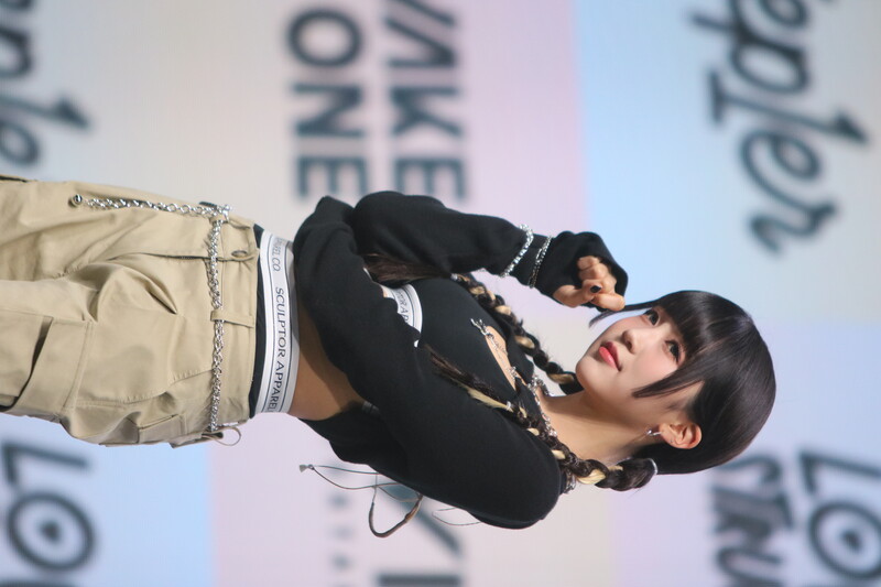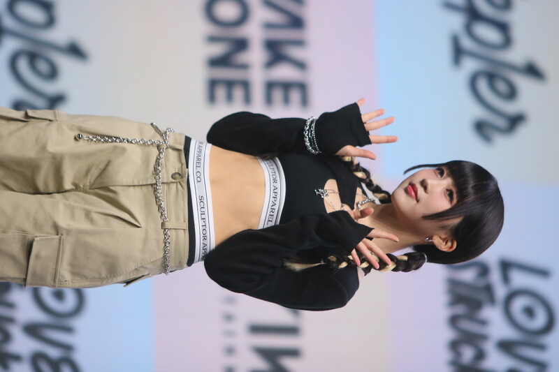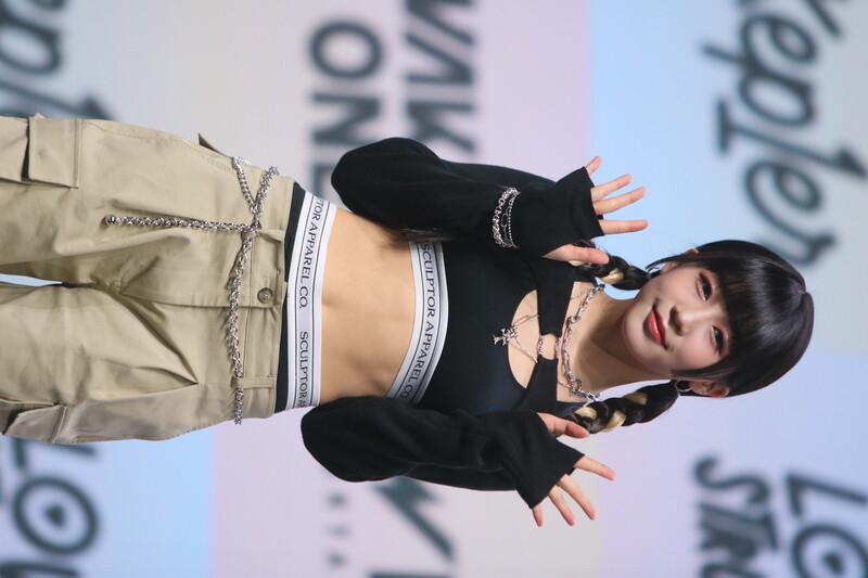These photos show Kep1er's Kim Chae-hyun, Kim Da-yeon, and Ezaki Hikaru during the media showcase of the nine-piece group's fourth mini album "LOVE STRUCK!," led by title track "Giddy."
