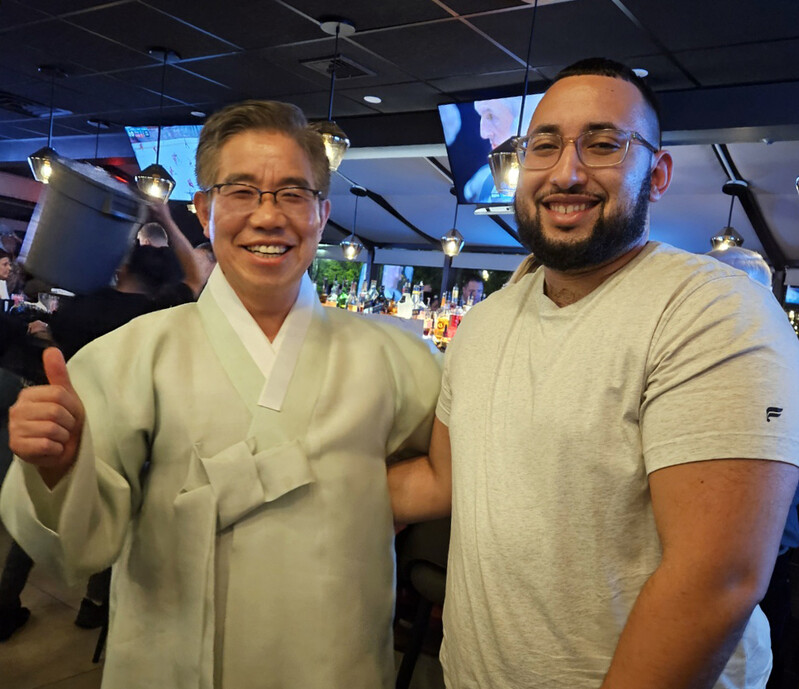 My fatigue was cured by the merry festivity of mingling and cheering aloud with those at the dinner table. I busied myself taking pictures with the attendees in hanbok, but most of those photos turned out blurry and out of focus due to the dim lighting.