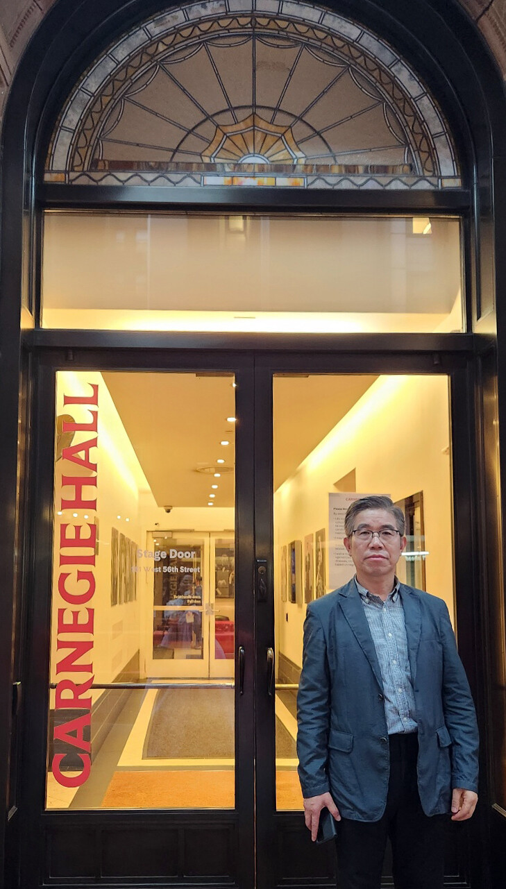 | ▲카네기 홀 앞에 선 필자. Photo of Lim Ha-soon in front of Carnegie Hall. |