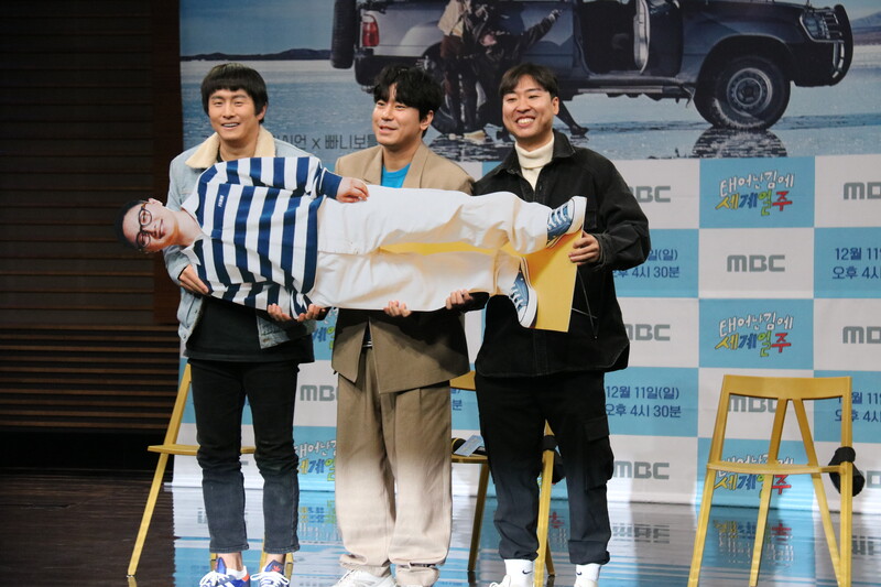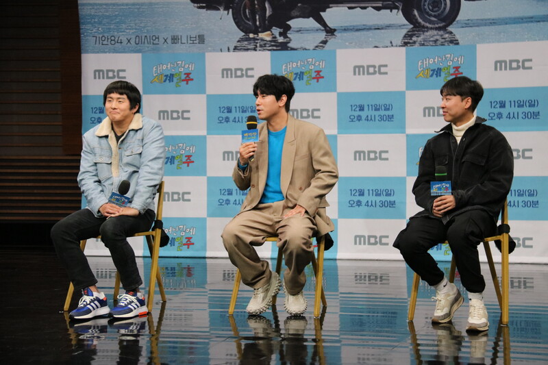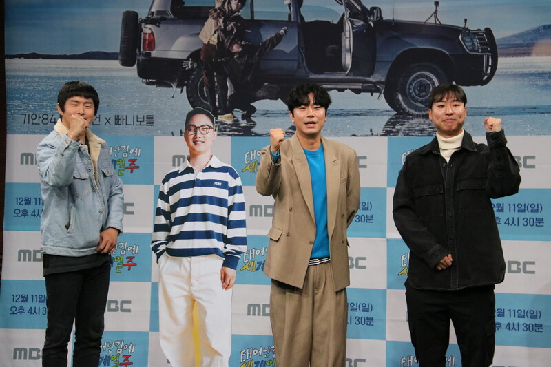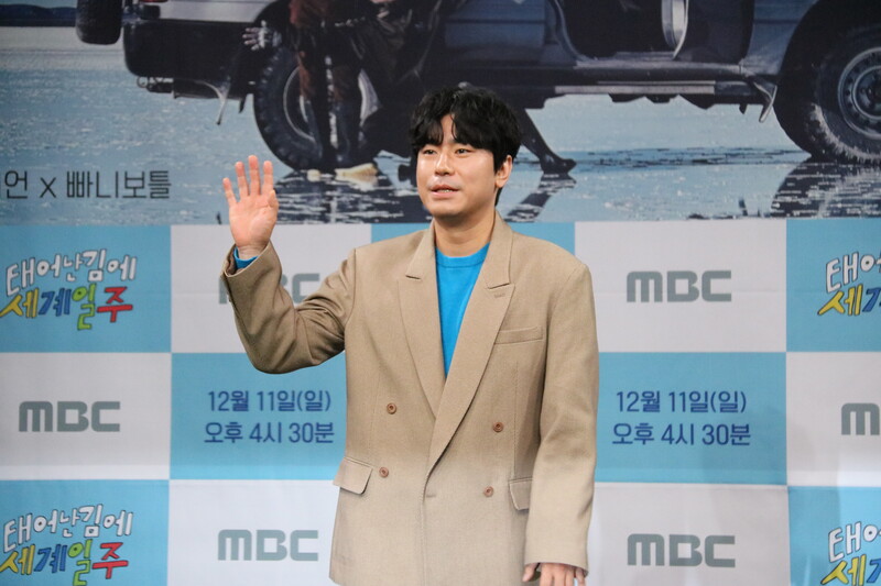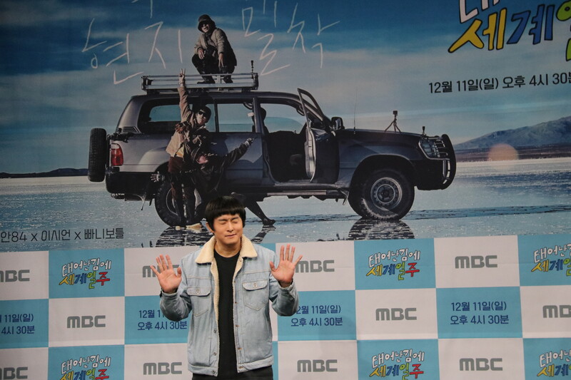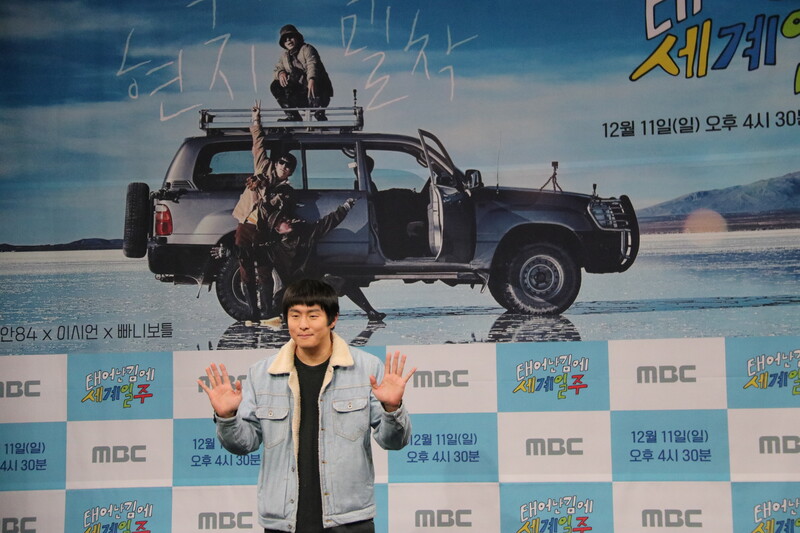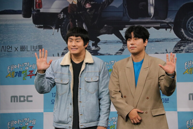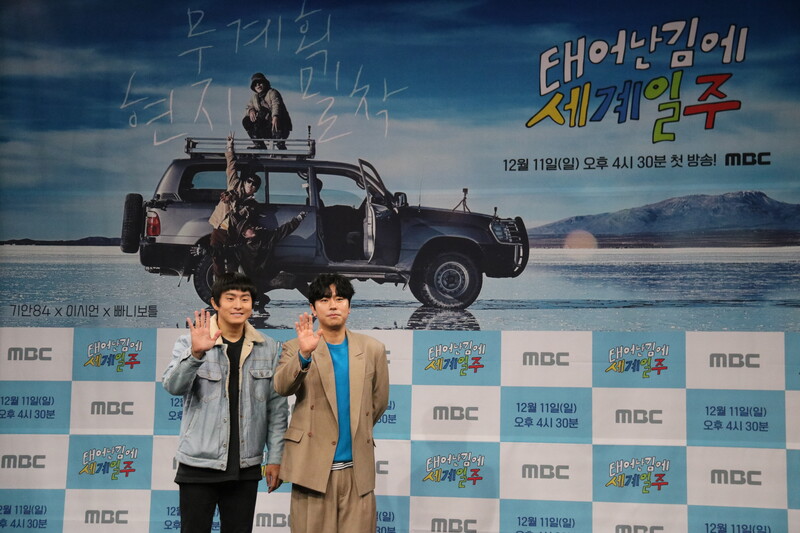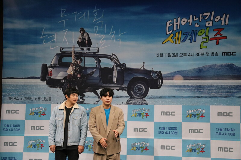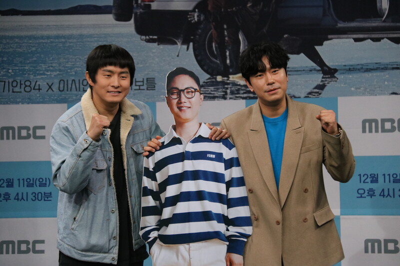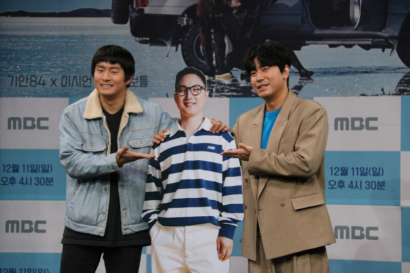 These photos show actor Lee Si-eon and webtoon artist Kian 84 during press conference of MBC's new variety show "Adventure By Accident" which will be premiered on December 11 at 4:30 p.m. (KST).