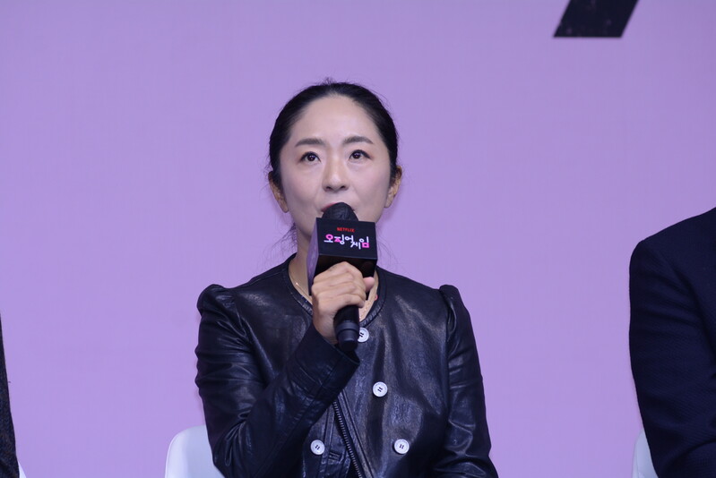 These photos, taken during the Emmys Celebration Press Conference for Netflix series Squid Game, shows, director Hwang Dong-hyuk, actress Lee Yoo-mi and more answering questions and posing for their individual and group photos.