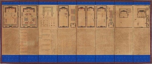 ▲ This photo of "Jongmyo Royal Ancestral Ritual Screen," provided by the National Palace Museum of Korea on May 16, 2024, contains writings and drawings explaining the main buildings of Jongmyo, major ritual procedures, and offerings for the ceremonies. (PHOTO NOT FOR SALE) (Yonhap)