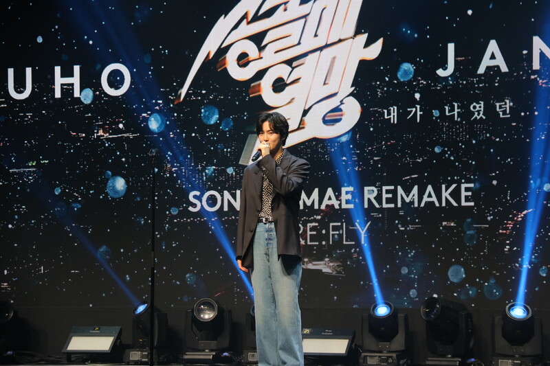 These are some of the individual photos Exo's Suho performing during the press conference of Songolmae.