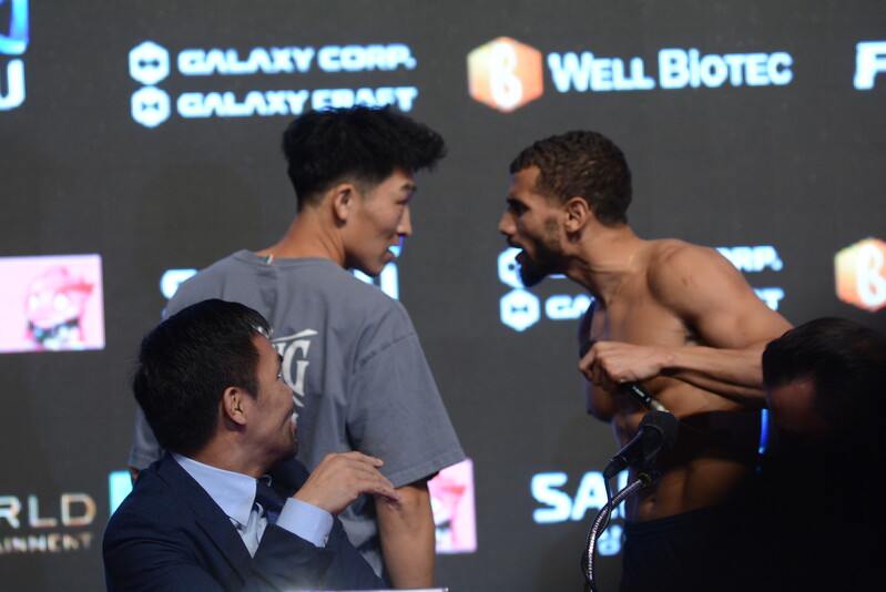 These photos taken during the press conference of upcoming exhibition match between Manny Pacquiao and DK Yoo show individual and group photos of fighters who will be participating at the upcoming exhibition match.